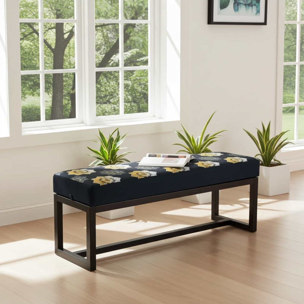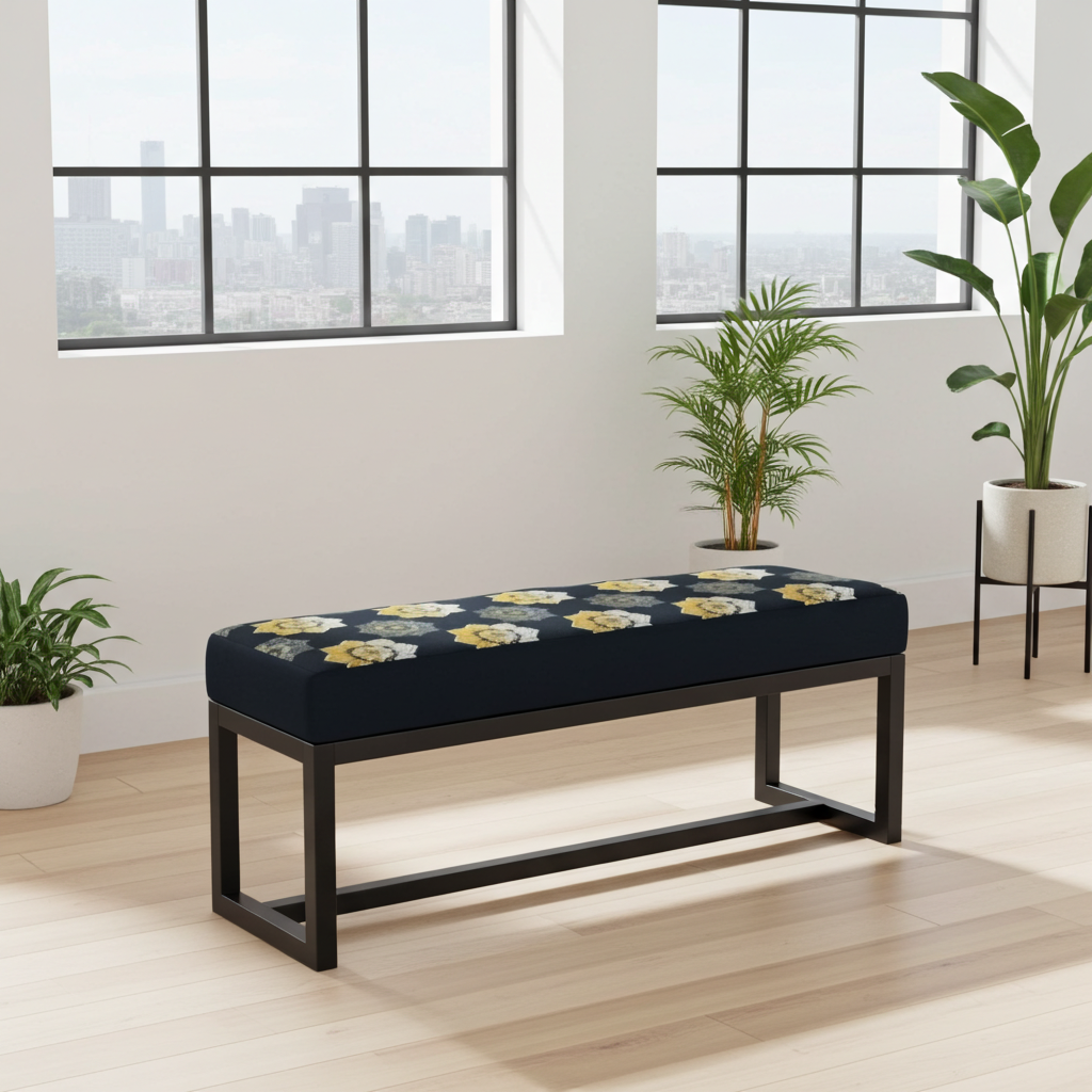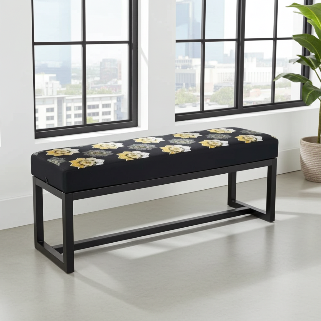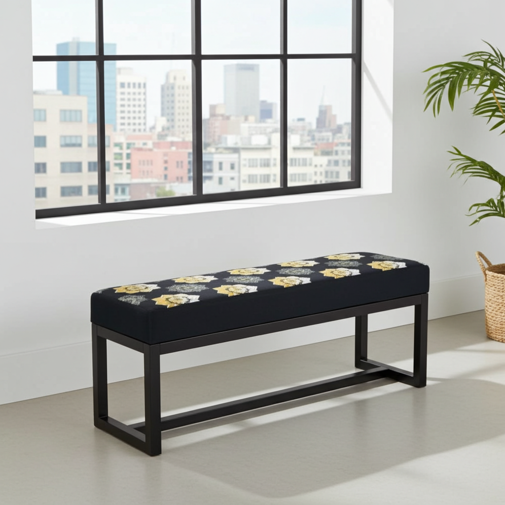 The premium velvet upholstery is soft and durable, ensuring comfort and style that lasts. The powder-coated metal frame adds strength and resists everyday wear, while its minimalist design blends seamlessly with modern, industrial, or eclectic décor. Because of its compact size, you can place this bench in smaller spaces without losing functionality or elegance.