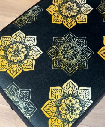 Hand-stitched velvet seat with unique floral pattern