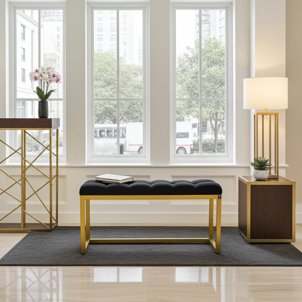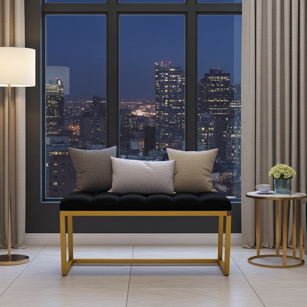 Modern Black Velvet Bench with Yellow Metal Frame – Handmade Urban Accent for Irish Homes