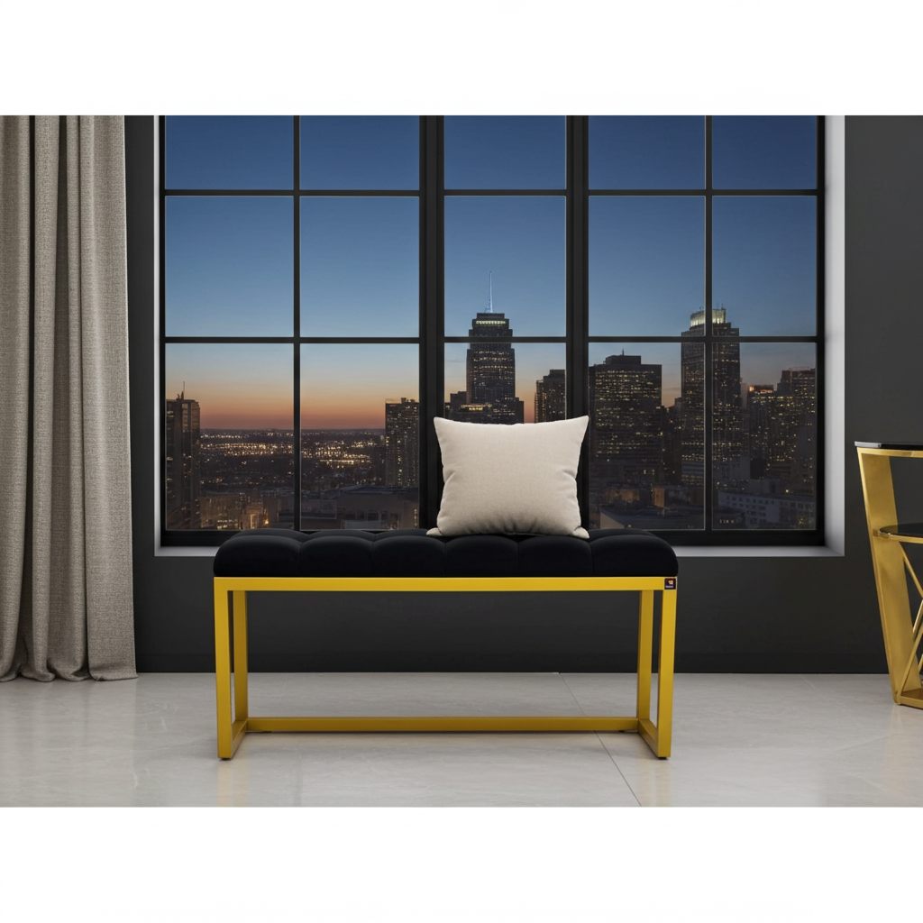 Elevate your space with the UrbanChic Metal-Framed Bench 100x30cm, featuring a luxurious black velvet seat and a bold yellow powder-coated metal frame. This handmade bench combines contemporary style, comfort, and durability, making it an excellent choice for hallways, bedrooms, living rooms, or any area that needs a sophisticated accent. The deep black upholstery and vibrant yellow frame create a striking contrast, ensuring your interior stands out.