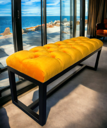Bring a burst of sunshine to your interiors with the UrbanChic Velvet Bench 100x30cm. This stylish piece features a vibrant yellow tufted velvet seat and a contemporary black metal frame. Designed for both comfort and impact, it’s the perfect way to add a pop of colour and a touch of urban sophistication to hallways, bedrooms, or living spaces.