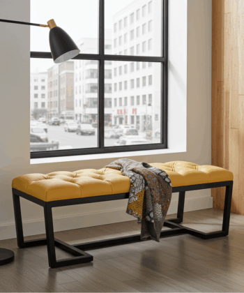 Handcrafted with attention to detail, the bench uses premium eco leather for a soft, durable, and easy-to-clean seat. The powder-coated black metal frame not only ensures stability but also resists daily wear, maintaining its modern look over time. Measuring 100cm in length, 40cm in width, and 40/50cm in height, this bench is versatile enough for compact or spacious interiors. Its tufted design adds texture, while the mustard colour brings warmth and energy to any room.