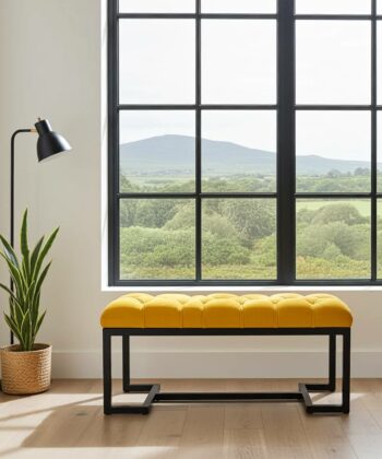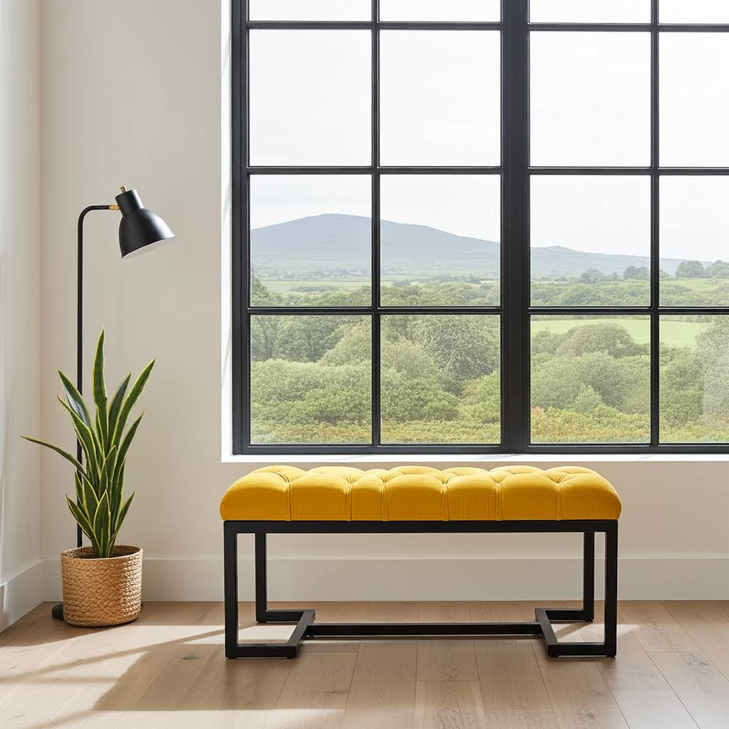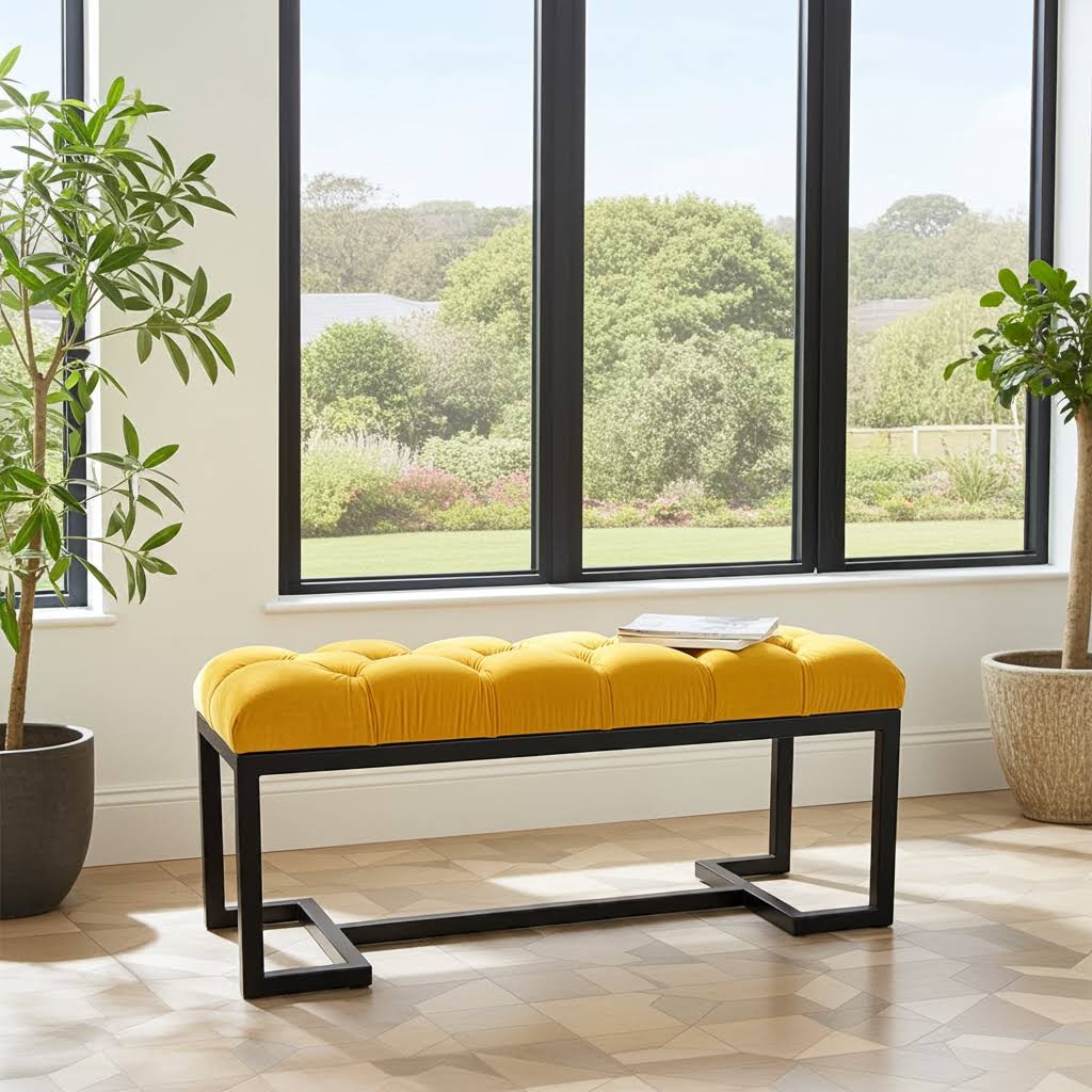Handmade Mustard Velvet Bench with Black Metal Frame – Modern Statement for Irish Interiors