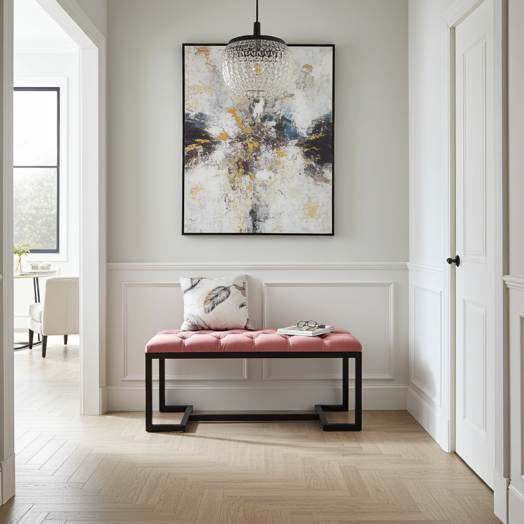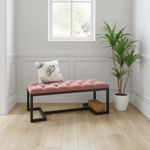 Refresh your space with this handmade bench, featuring a plush rose pink velvet seat and a bold black frame. Its compact size is ideal for hallways, bedrooms, or living rooms. Dimensions: 100x40x40/50cm. Enjoy premium comfort, modern design, and lasting craftsmanship in one elegant piece