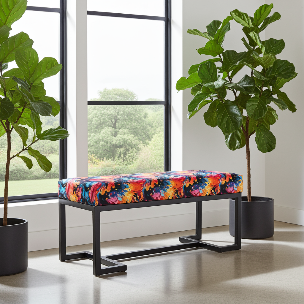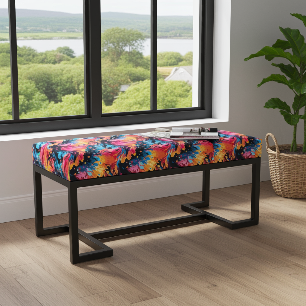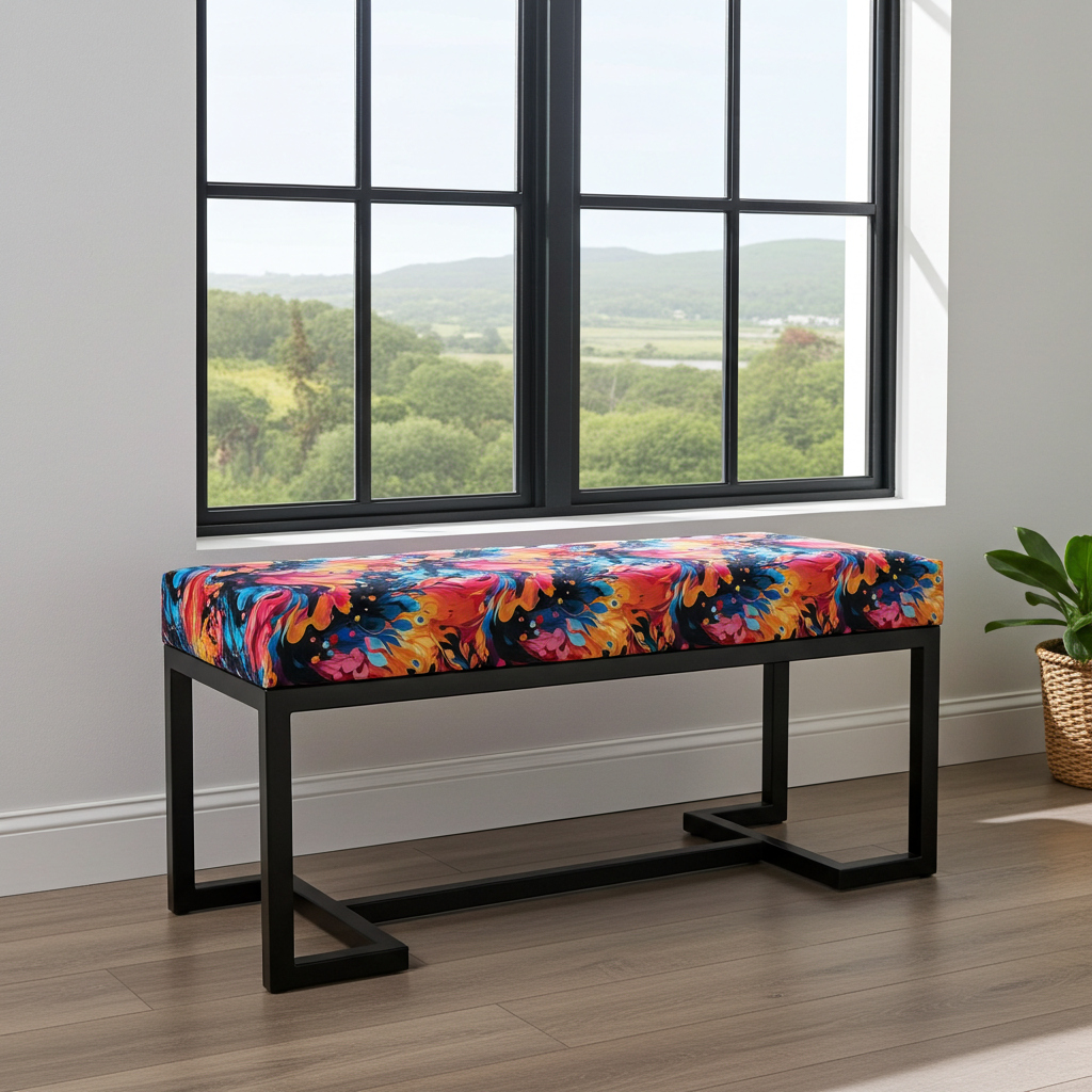 Handmade Multicolour Velvet Bench with Black Metal Frame – Artistic Flair for Modern Irish Interiors