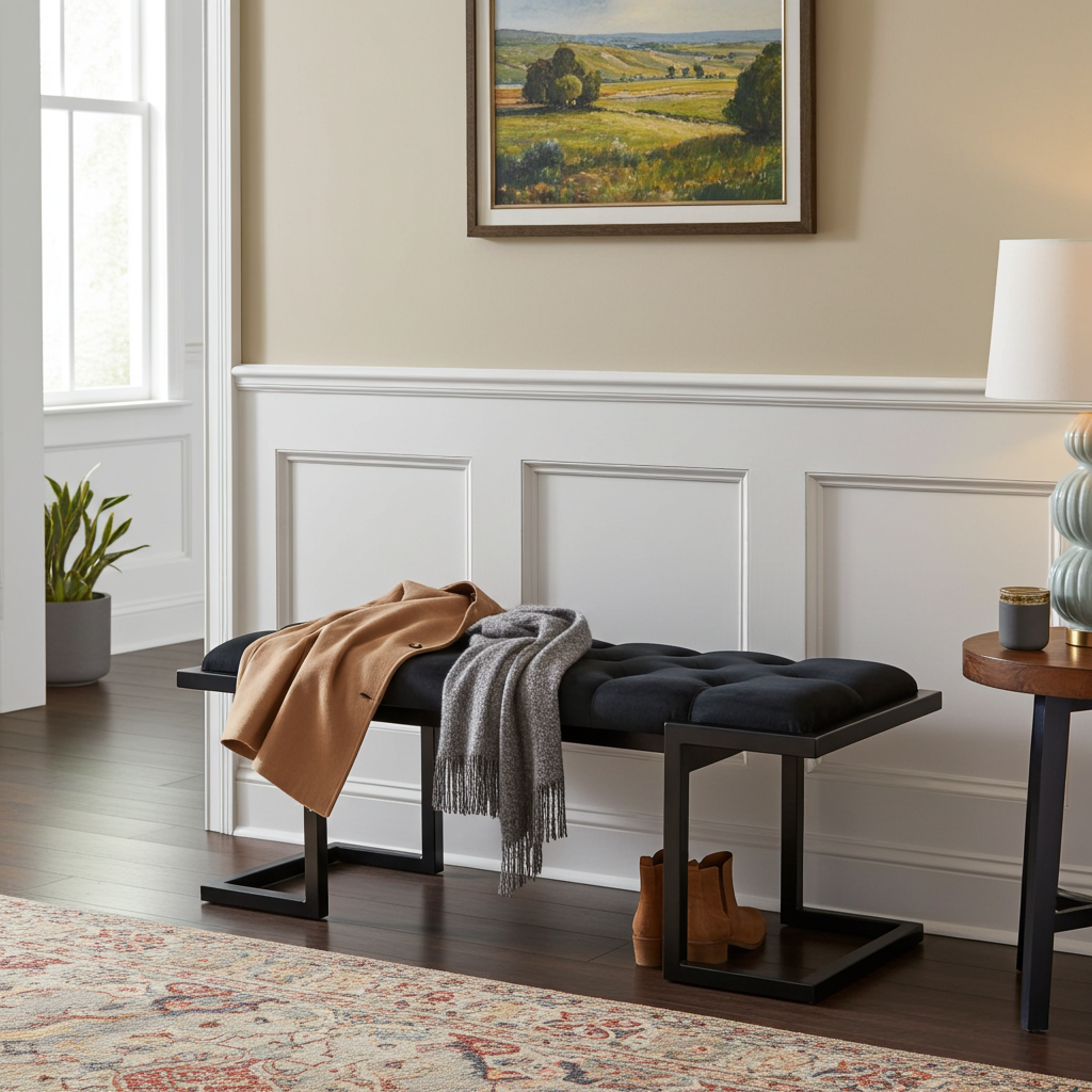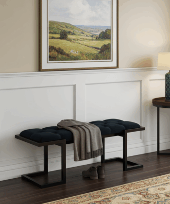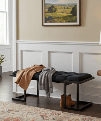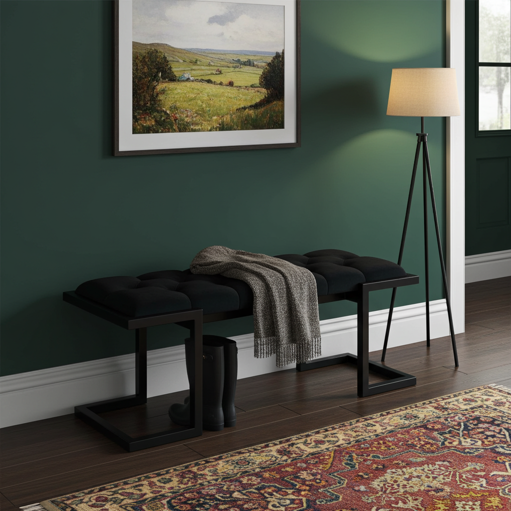 Revolutionise your interior space with PouffeLove’s sophisticated metal-framed bench showcasing premium black velvet upholstery. Additionally, this exceptional piece features an innovative angular Z-frame design that creates architectural interest. Moreover, it’s expertly handcrafted for discerning Irish interiors. Furthermore, the striking black powder-coated metal framework delivers modern industrial elegance to any room.