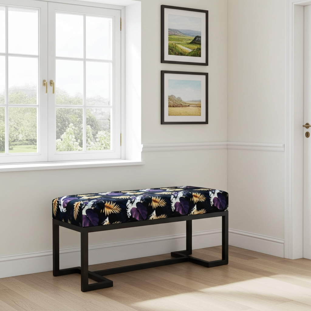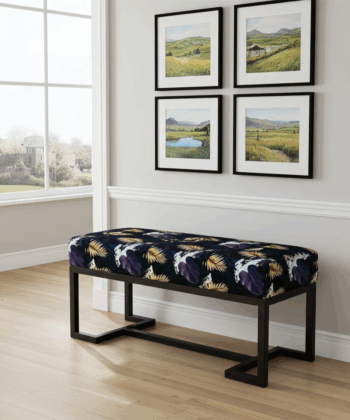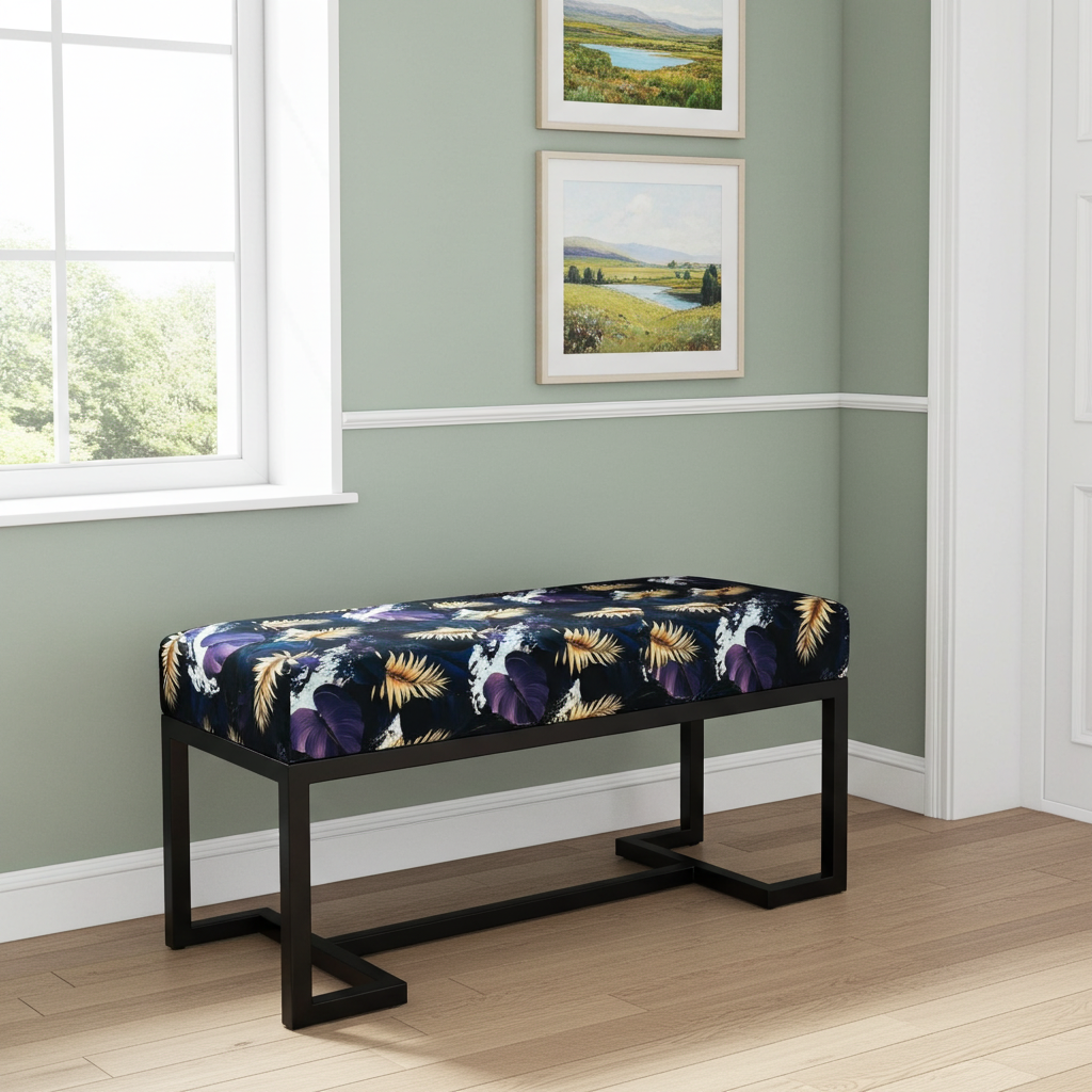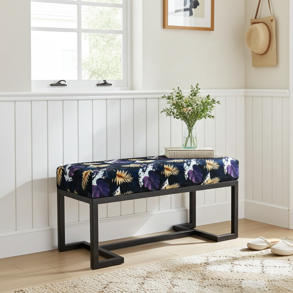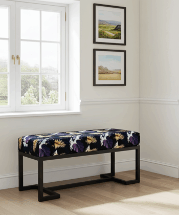 Handmade Botanical Velvet Bench with Black Metal Frame – Dramatic Modern Accent for Irish Homes