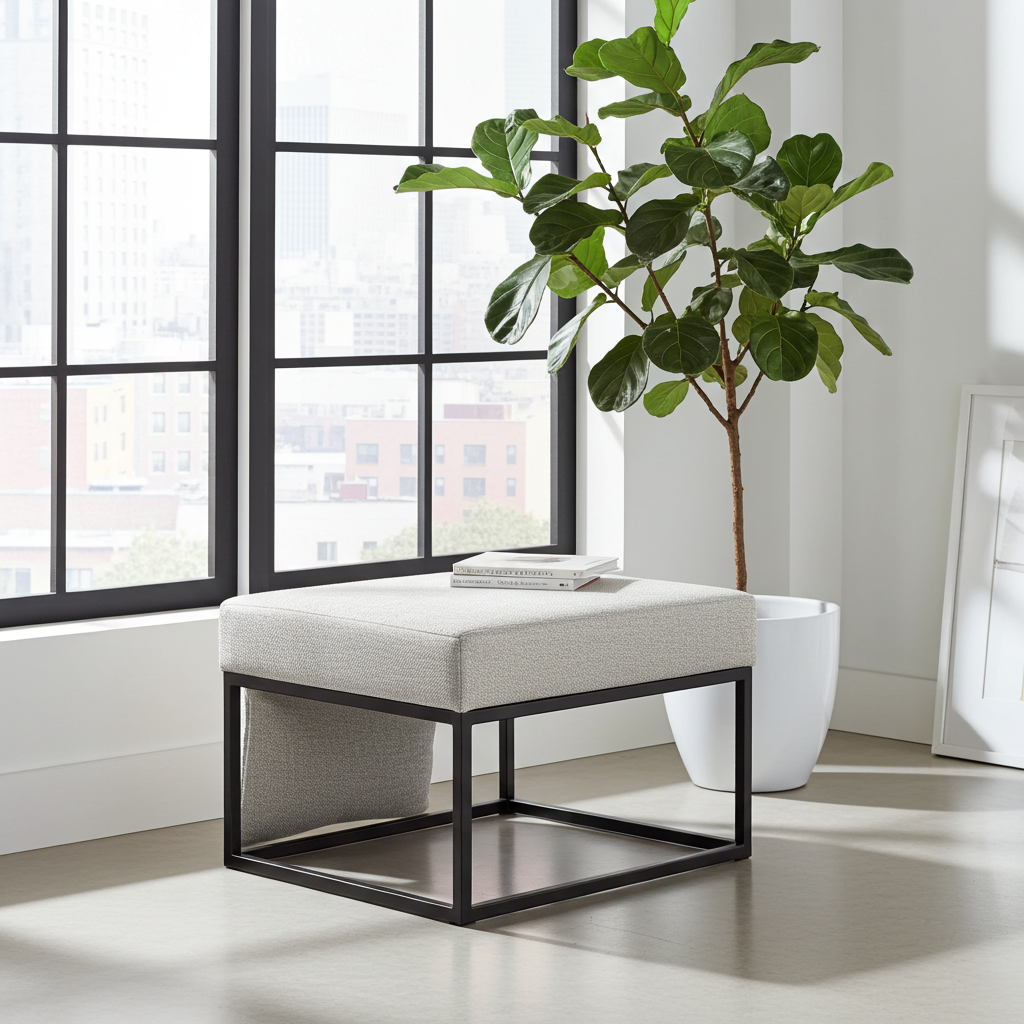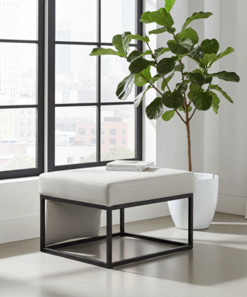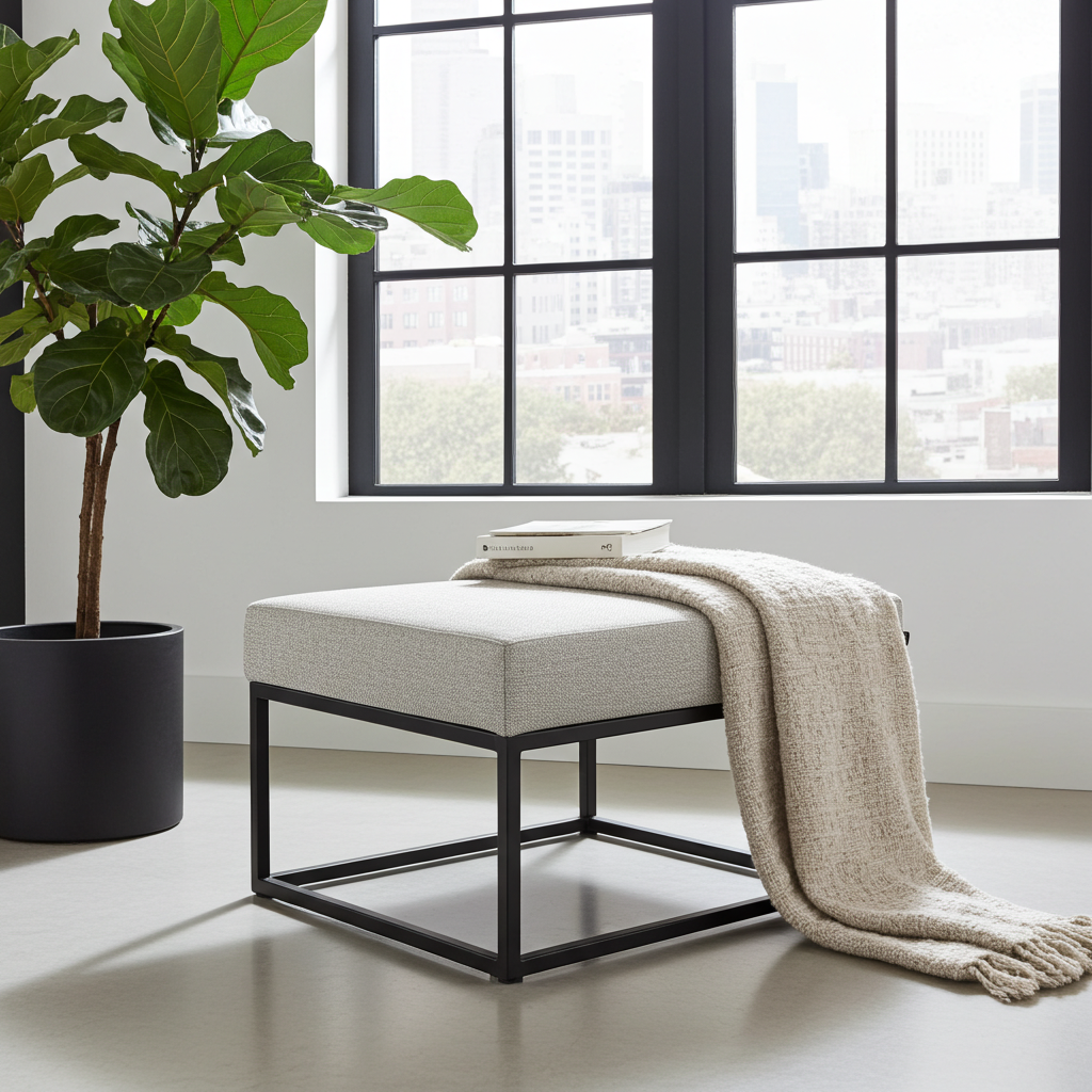 The ottoman showcases premium light gray fabric upholstery that creates sophisticated texture and calming visual appeal. Additionally, the durable fabric material provides exceptional comfort while adding contemporary elegance and versatility. Meanwhile, the black powder-coated steel cube frame ensures exceptional structural integrity and modern appeal. Similarly, the handcrafted construction delivers superior quality suitable for daily residential use and entertaining guests.
