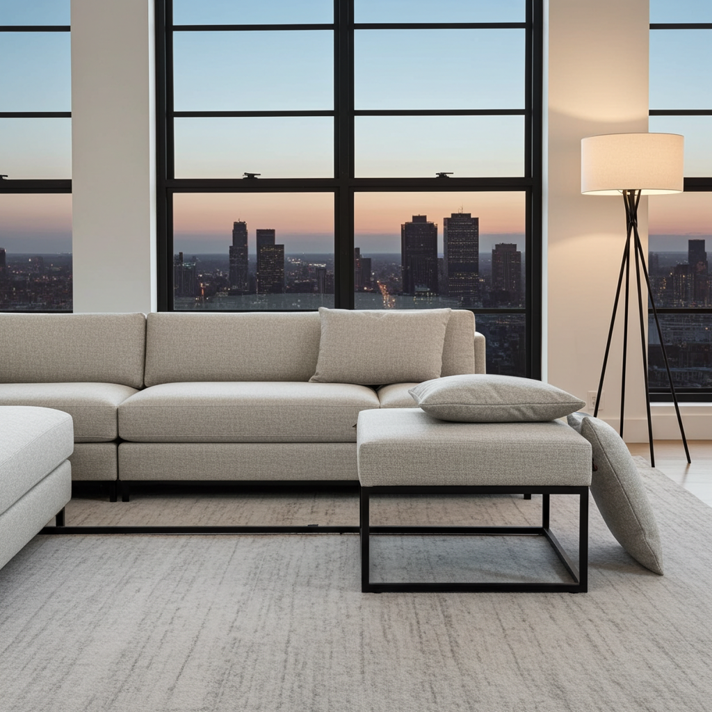 Premium light gray fabric upholstery with contemporary texture design