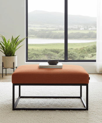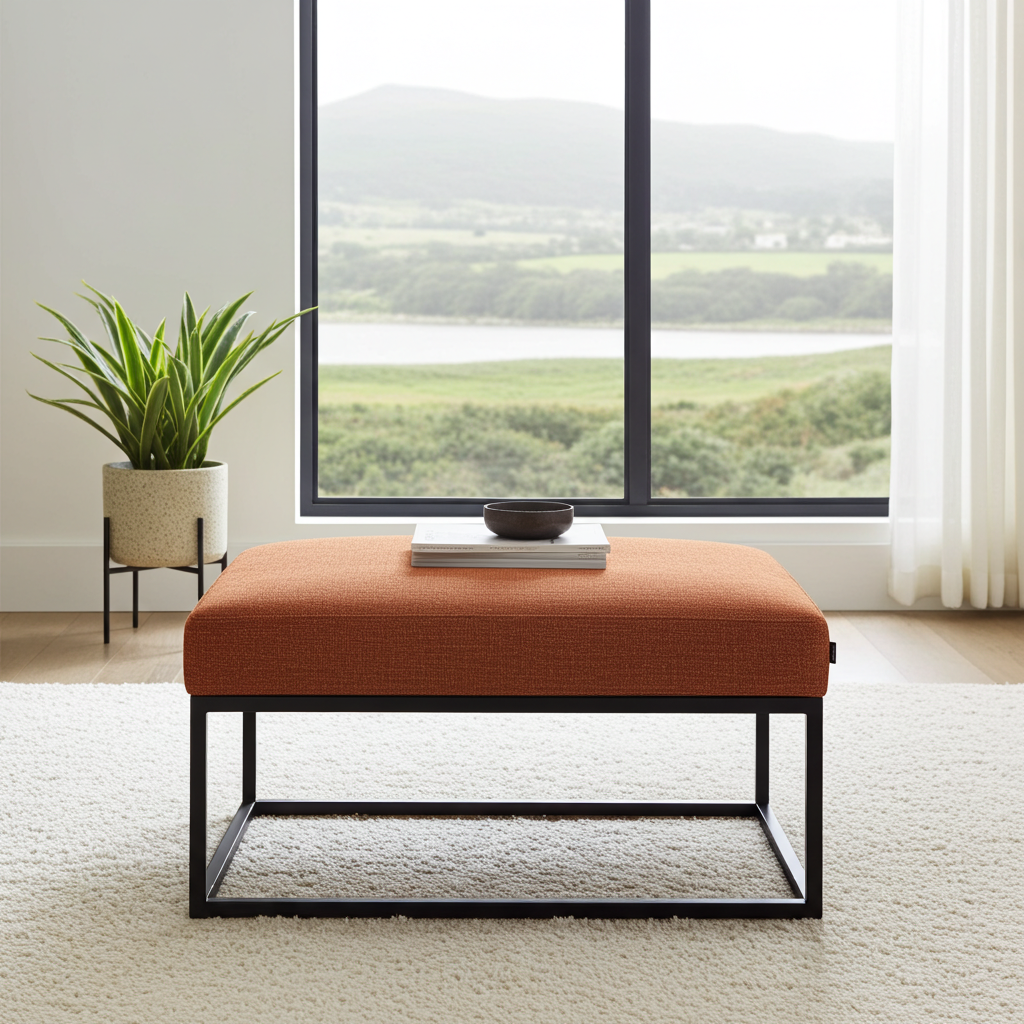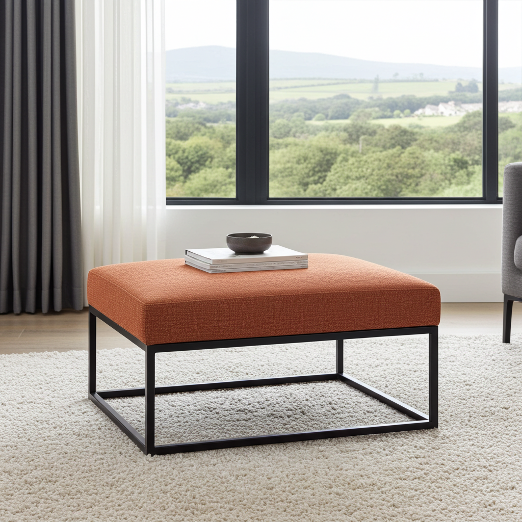 This versatile furniture piece excels as a coffee table, extra seating, or accent furniture in living rooms, creative spaces, and reading nooks. Furthermore, the square proportions accommodate comfortable use for various applications from coffee service to footrest functionality. Also, the warm rust orange color creates stunning focal points that complement neutral interior palettes. Therefore, it bridges functional versatility with earthy contemporary design aesthetics seamlessly.