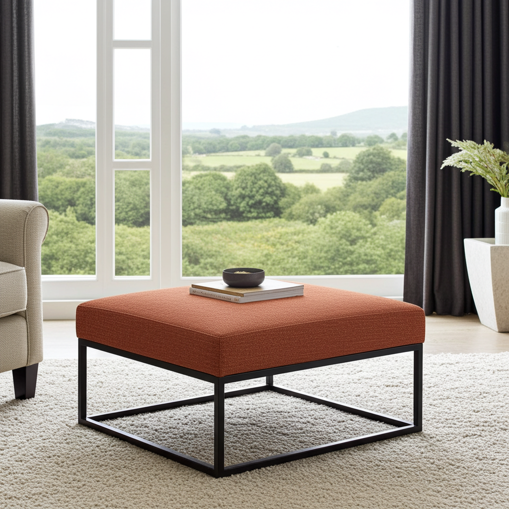 This exceptional rust orange fabric coffee table combines earthy color sophistication with artisanal craftsmanship through its premium upholstery and robust metal frame design. Moreover, it features luxurious rust orange fabric upholstery paired with a sleek black powder-coated steel frame construction. Additionally, the perfect 60x60cm square dimensions provide versatile functionality while making a warm artistic style statement. Furthermore, the rich rust orange color brings natural warmth and contemporary sophistication to modern Irish living environments.