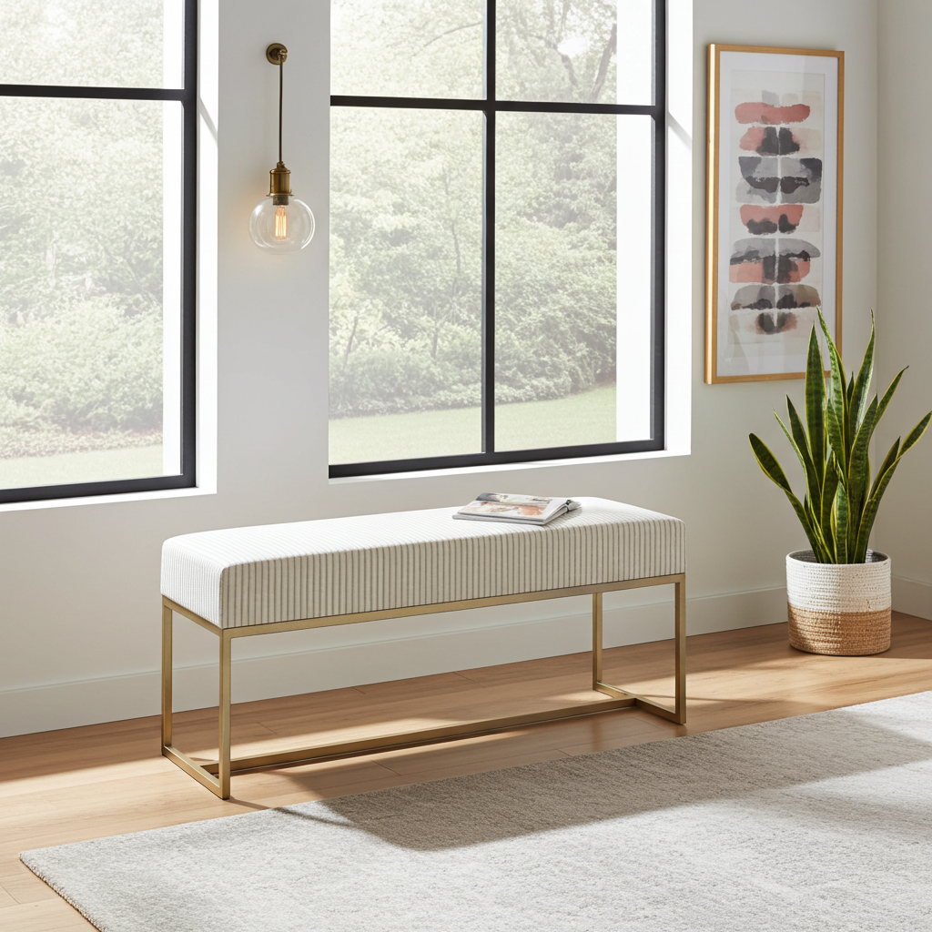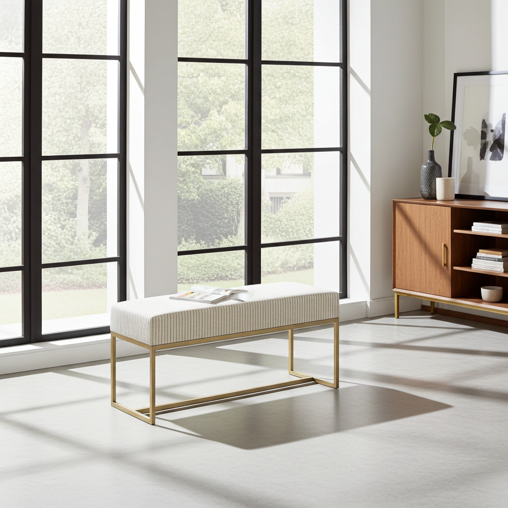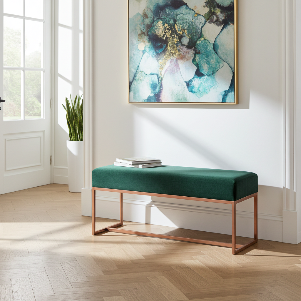 Upgrade your interior with this modern upholstered bench, designed to offer both comfort and style. The cushioned seat delivers exceptional comfort, while the minimalist metal frame features a durable powder coated chrome finish for long-lasting beauty and resistance to wear. Ideal for hallways, entryways, bedrooms, or as a chic accent in living spaces, this versatile bench combines practicality with sophisticated design. Its clean lines ensure it suits a range of décor styles, and its robust construction makes it perfect for everyday use in both residential and commercial settings.