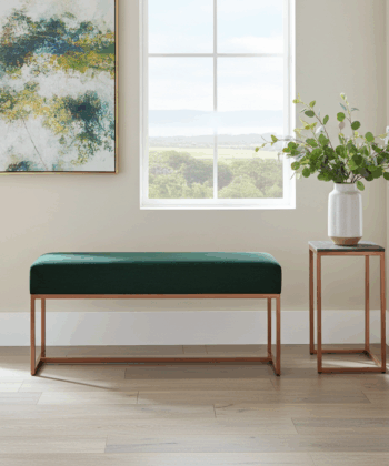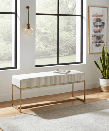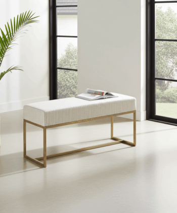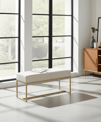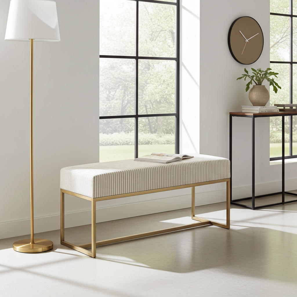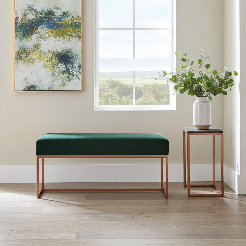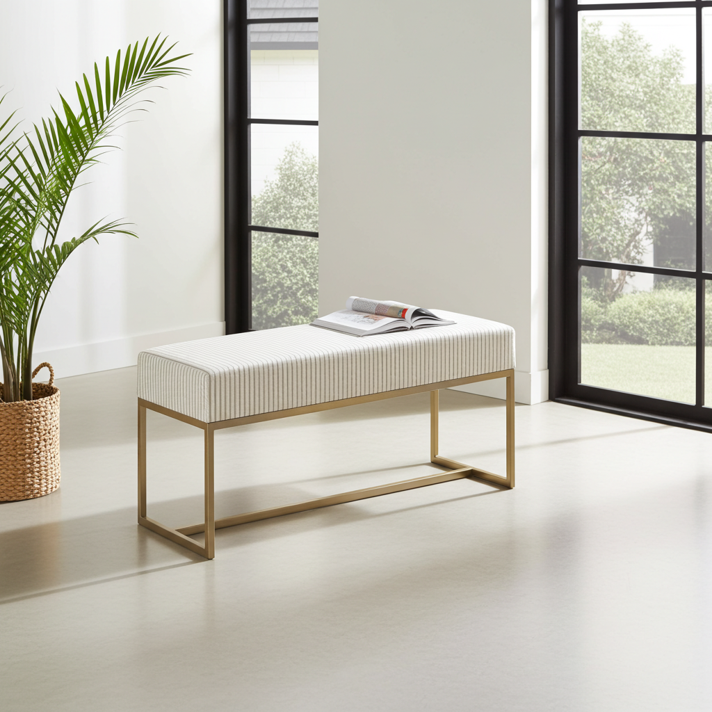 Upgrade your interior with this modern upholstered bench, designed to offer both comfort and style. The cushioned seat delivers exceptional comfort, while the minimalist metal frame features a durable powder coated chrome finish for long-lasting beauty and resistance to wear. Ideal for hallways, entryways, bedrooms, or as a chic accent in living spaces, this versatile bench combines practicality with sophisticated design. Its clean lines ensure it suits a range of décor styles, and its robust construction makes it perfect for everyday use in both residential and commercial settings.
