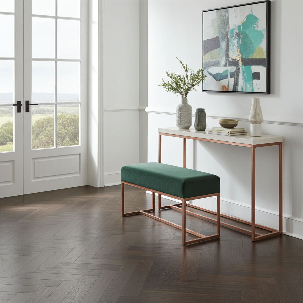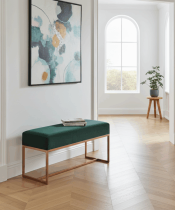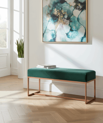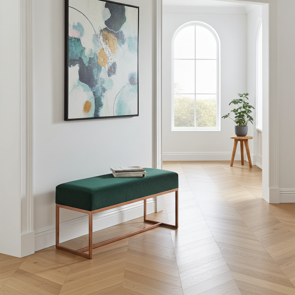 Nova Velvet Hallway or Bedroom Bench with Polished Steel Frame, 100x30x44cm – Stylish Seating for Modern Interiors