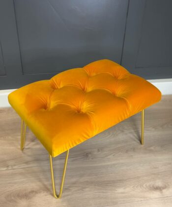 Orange Velvet Footstool 60x40cm – Golden Hairpin Legs