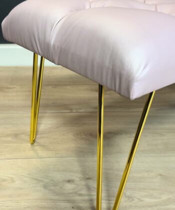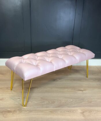 Premium Handcrafted Pink Velvet Bench with Button Tufting and Luxurious Golden Hairpin Legs – Elegant Designer Seating Solution for Contemporary Irish Homes