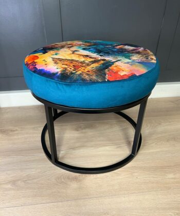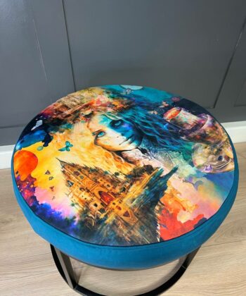 This versatile masterpiece adapts effortlessly to your lifestyle – serve as an artistic coffee surface for morning conversations, provide comfortable seating for intimate gatherings, or function as a stunning centerpiece that commands attention. The plush velvet construction paired with the artistic upholstery creates an inviting tactile experience, while the robust circular frame ensures lasting stability.