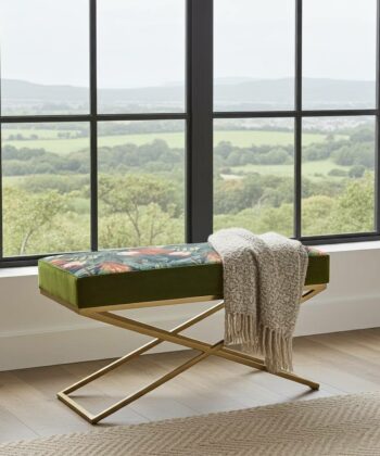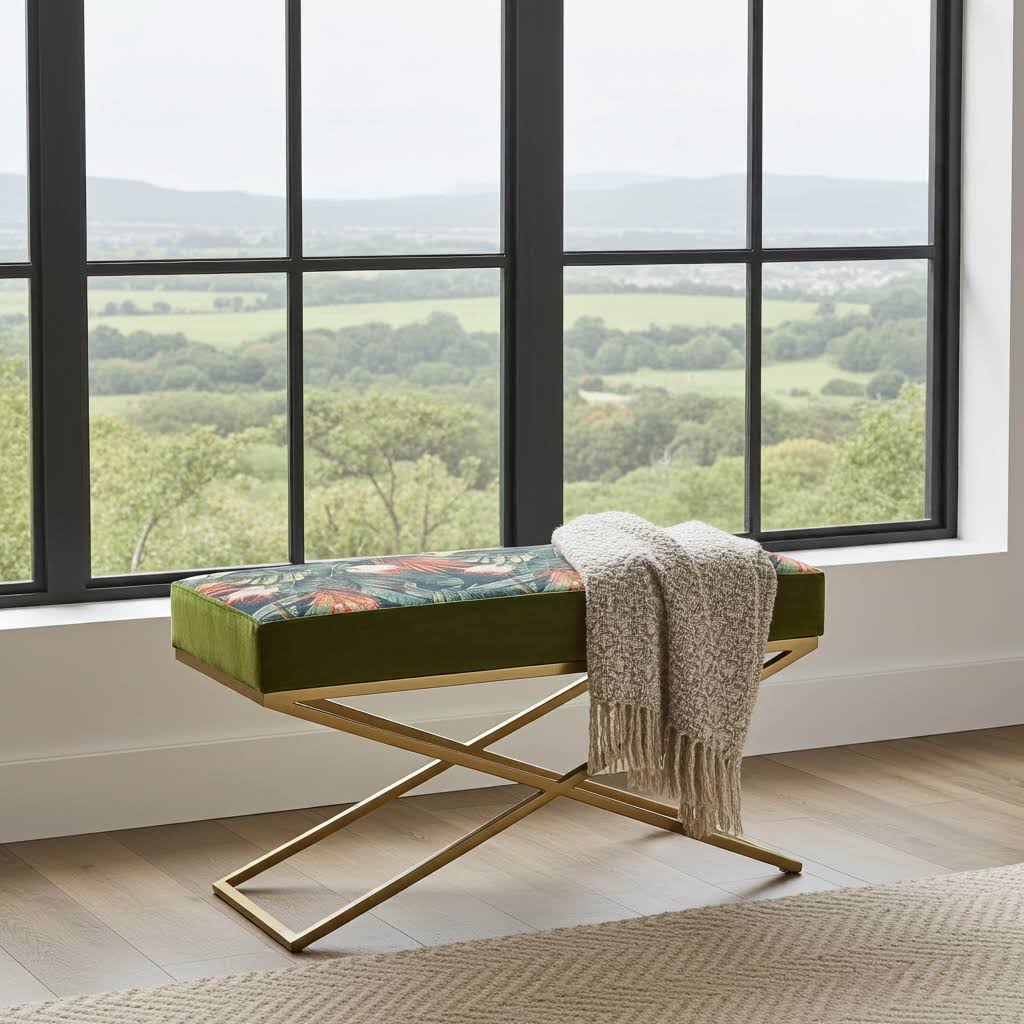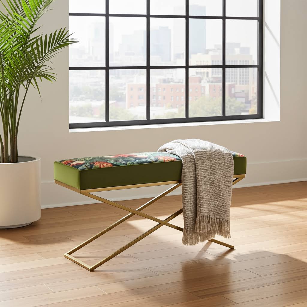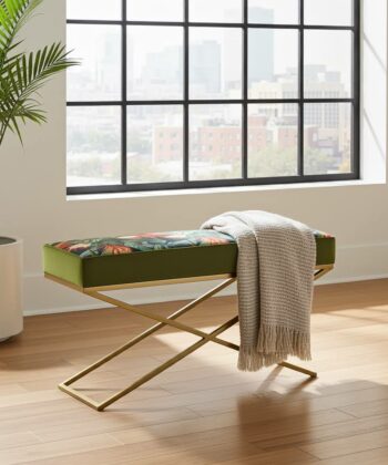 Why Choose a Botanical Velvet Bench with a Gold X-Frame?