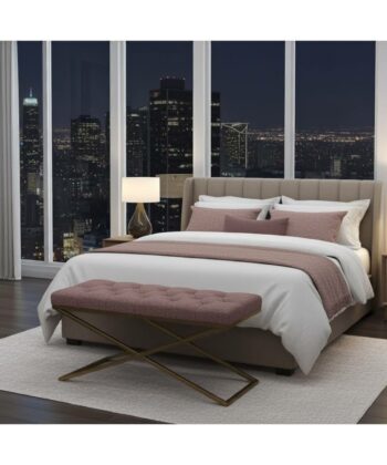 This bench is crafted with high-quality pink velour upholstery, offering a soft and comfortable seat. The gold powder-coated metal frame ensures durability, stability, and resistance to daily wear. Its dimensions—100cm in length, 40cm in width, and 50cm in height—make it versatile for both spacious and compact rooms. The sturdy construction guarantees long-lasting use and reliable support. Whether you need extra seating or a decorative accent, this bench complements a wide range of interior styles and brings a sophisticated feel to your home.