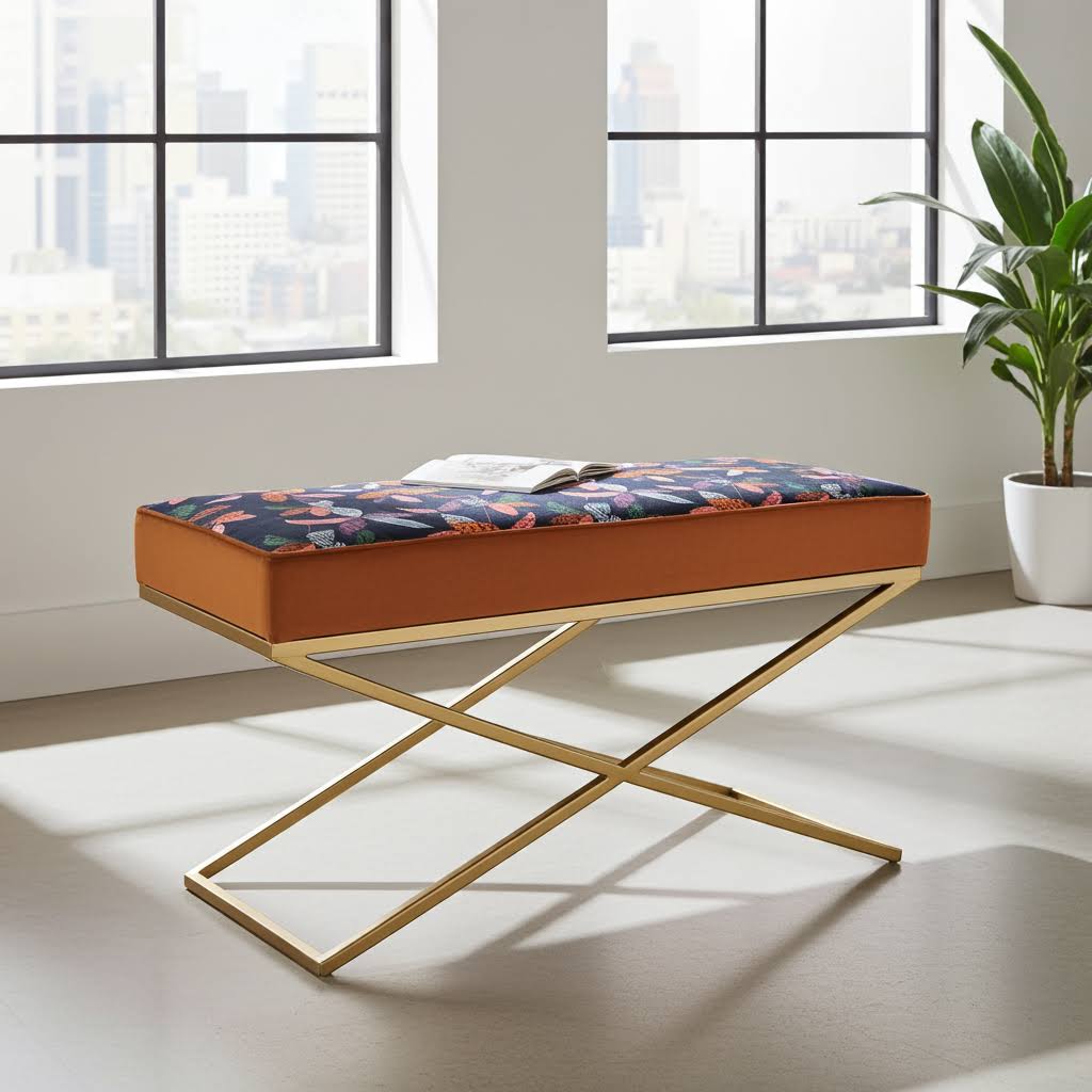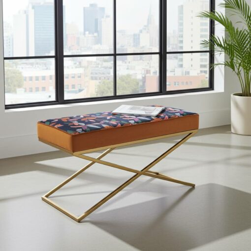 Metal-Framed Bench 100x40cm Single X Style – Velvet Upholstery & Durable Metal Frame