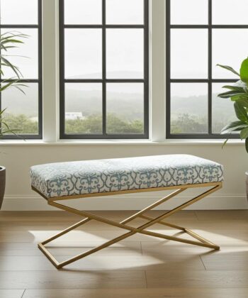 Whether you need extra seating, a decorative accent, or a practical spot for putting on shoes, this bench blends functionality with timeless style. The unique upholstery pattern and gold frame suit both modern and classic interiors, adding a refined touch wherever it’s placed.