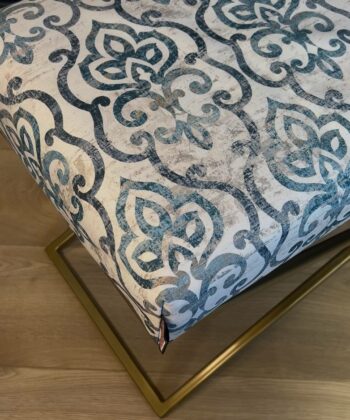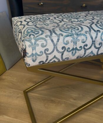 Handmade Patterned Velvet Bench with Antique Gold Metal Frame – Timeless Luxury for Irish Interiors
