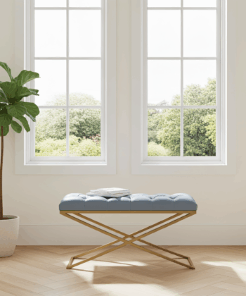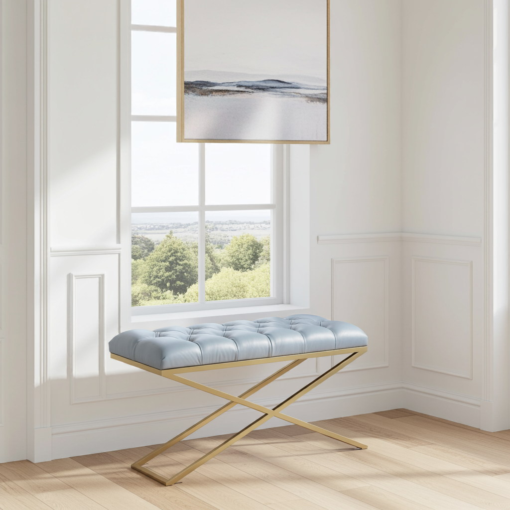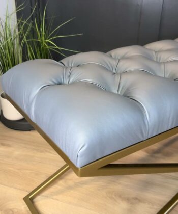 Handmade Light Grey Tufted Bench with Antique Gold Metal Frame – Modern Luxury for Irish Interiors
