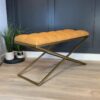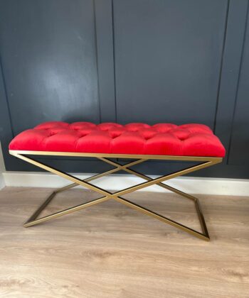 Premium Handcrafted Red Velvet Bench with Elegant Gold X-Frame Design for Irish Homes