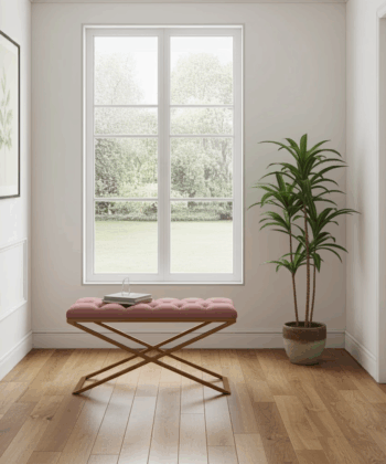 Furthermore, the powder-coated frame resists wear and tear, so your bench will maintain its polished look over time. The unique X-style design not only enhances stability but also brings a contemporary flair to your décor. Above all, this bench is designed to complement different interior styles, from modern to glam.