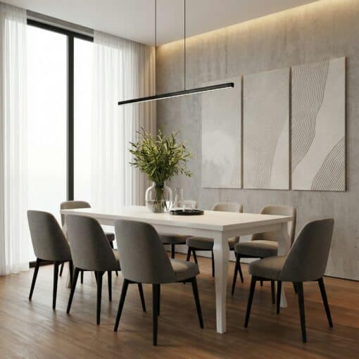The Oslo table captures the essence of Scandinavian minimalism with its simple rectangular lines and practical design. Built from premium materials, it combines durability with timeless aesthetics — making it a centrepiece of any modern dining room.