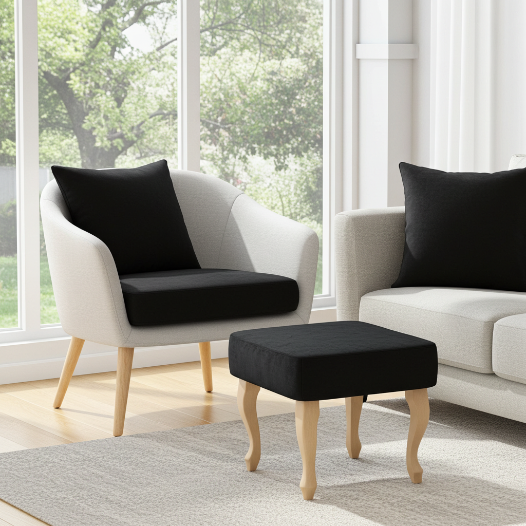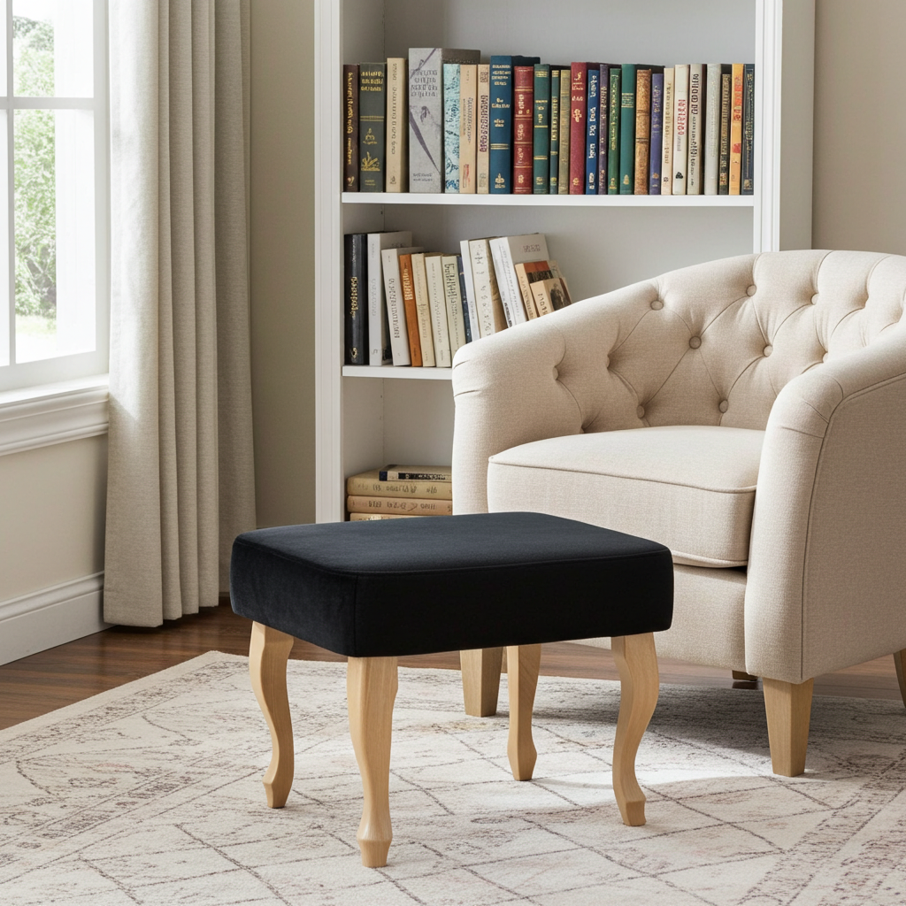 This Black Velvet Footstool adds a sleek, modern accent to any living room, bedroom or office. The 60 x 40 cm rectangular seat is upholstered in high‑quality black velvet that feels soft and luxurious while remaining durable for everyday use. A supportive foam filling inside the seat delivers comfortable cushioning whether you use it as a footrest, extra seat or small coffee table with a tray.