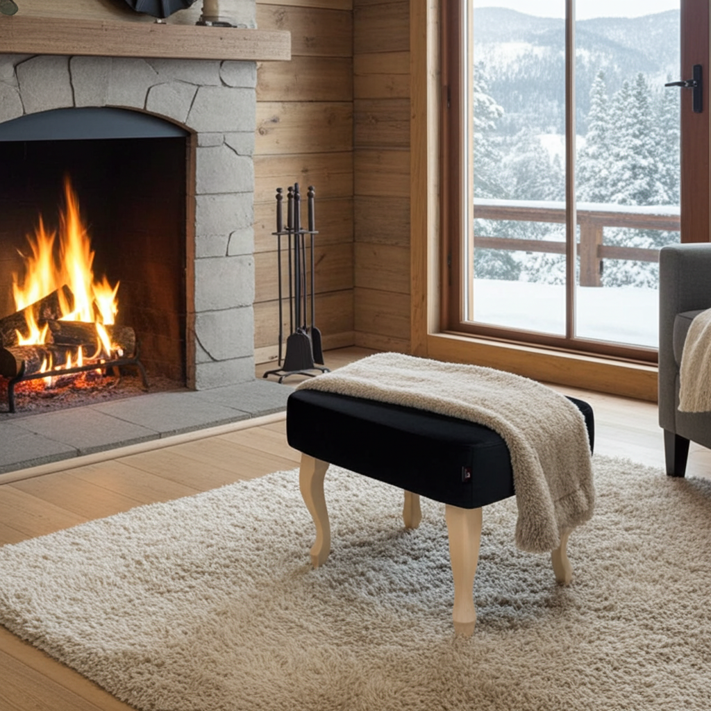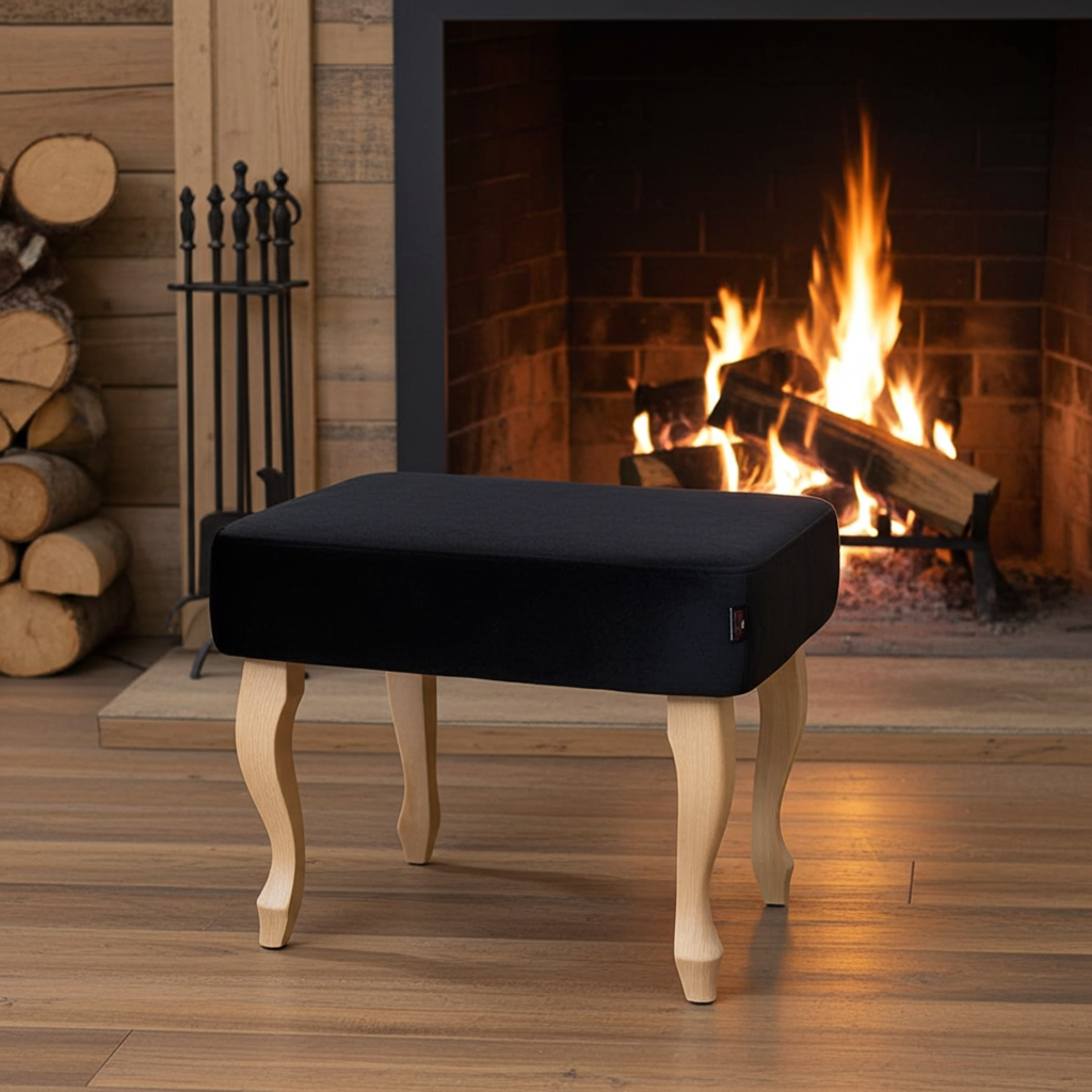 Black Velvet Footstool 60×40 cm – Handcrafted Rectangular Pouffe with Adjustable Beech or Metal Legs