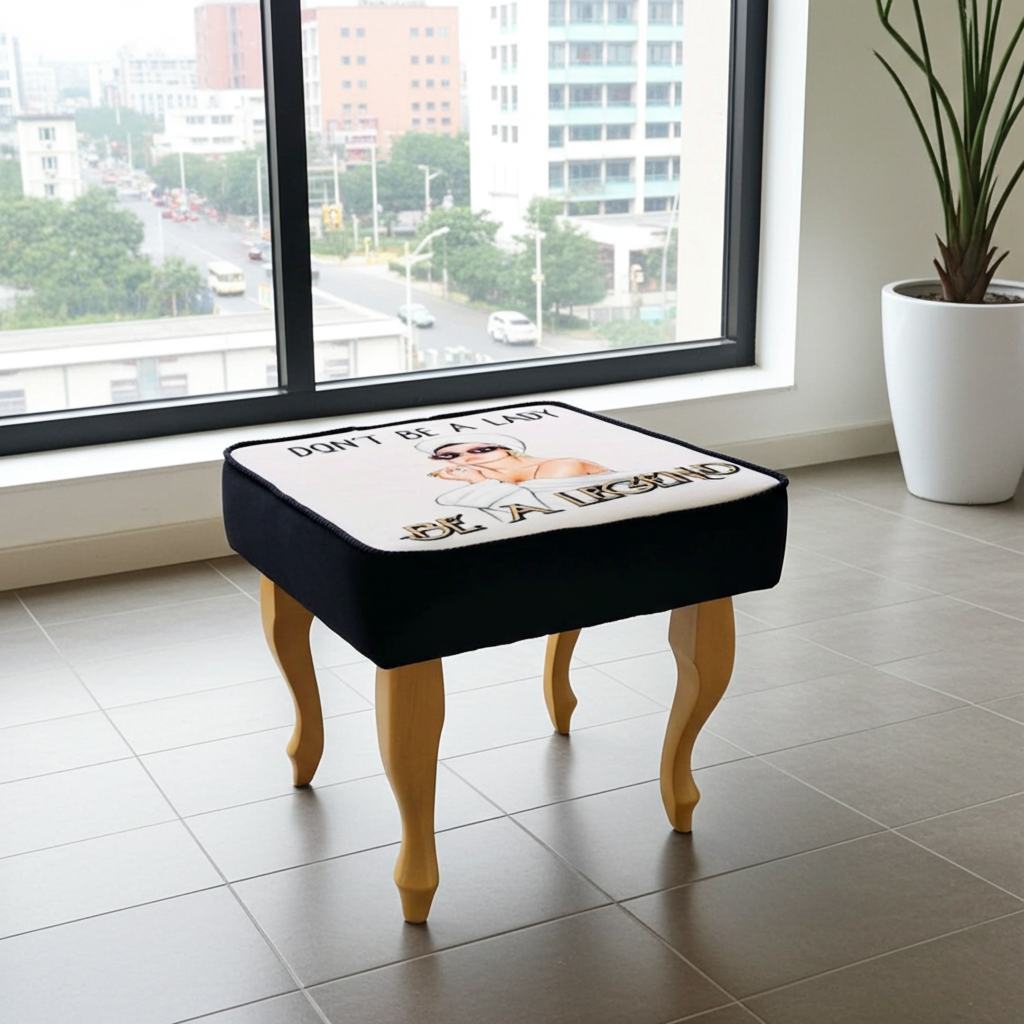 Add a bold, empowering touch to your home with this 60×40 cm footstool featuring the quote “Don’t Be a Lady, Be a Legend” and elegant curved wooden legs. Perfect as a comfortable footrest or small accent stool in your living room, bedroom or dressing room.