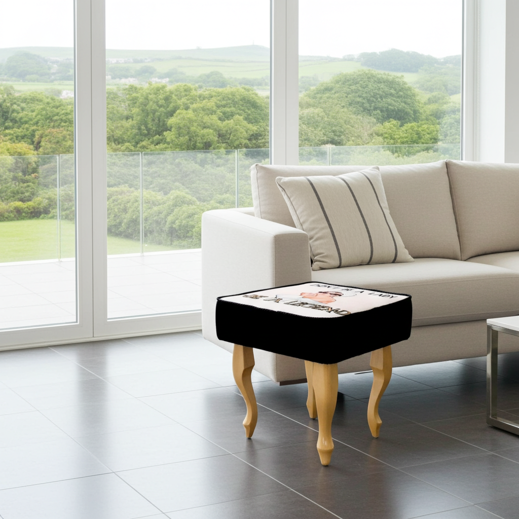 Empowering “Be a Legend” 60x40cm Footstool with Fashion Illustration and Curved Wooden Legs