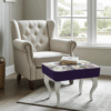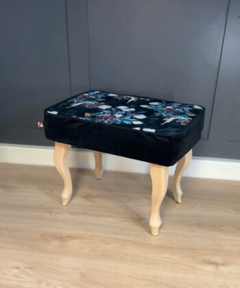 The described product is an upholstered pouf with dimensions of 60 x 40 cm and a height of 40 cm. The seat is covered with high-quality velvet fabric.
