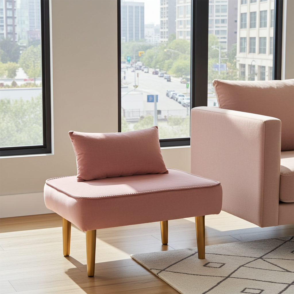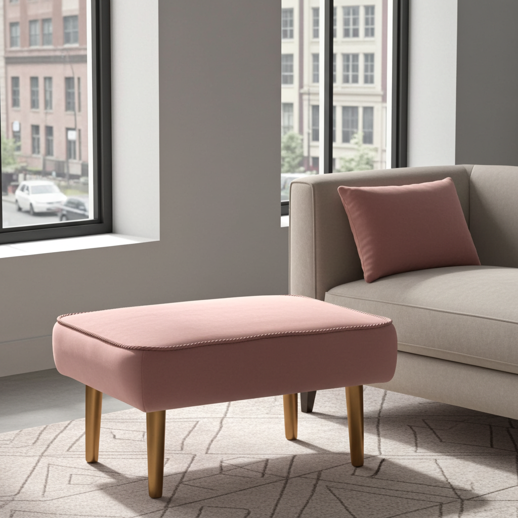 The footstool presents sumptuous pink velvet upholstery with smooth texture across the entire seating surface. Subsequently, it provides exceptional comfort and gentle aesthetic charm. Meanwhile, the dusty rose colour adds femininity and warmth to your space. Specifically, this soft shade complements both modern and traditional interior schemes beautifully. Therefore, it creates a welcoming accent piece for diverse decorating approaches.
