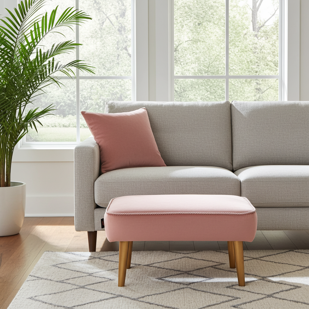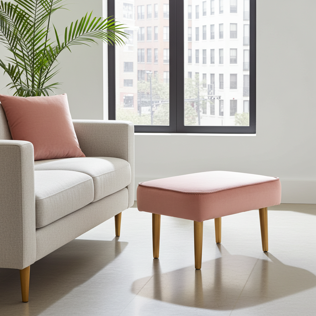 The natural beech wood legs provide excellent stability and organic aesthetics with protective oil finish. Meanwhile, the premium pink velvet introduces sophisticated comfort and gentle visual appeal. Additionally, the height can be adjusted depending on selected leg options. Therefore, this footstool represents a delightful investment for charming Irish homes and comfortable family living.