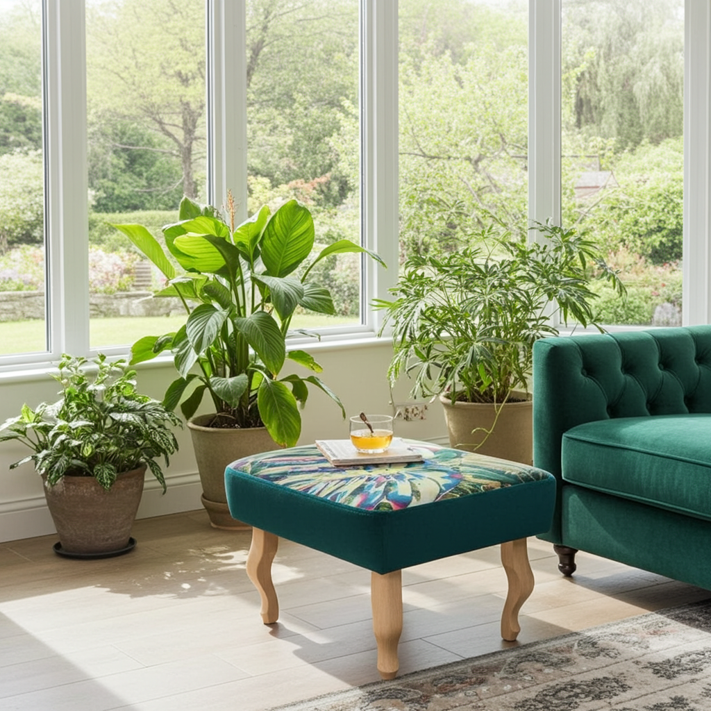 This footstool is as practical as it is beautiful—use it as a comfortable footrest, an extra seat for guests, or a striking accent that brings a splash of colour and botanical flair to your space. The foam-filled cushion ensures lasting comfort, making it perfect for everyday use.