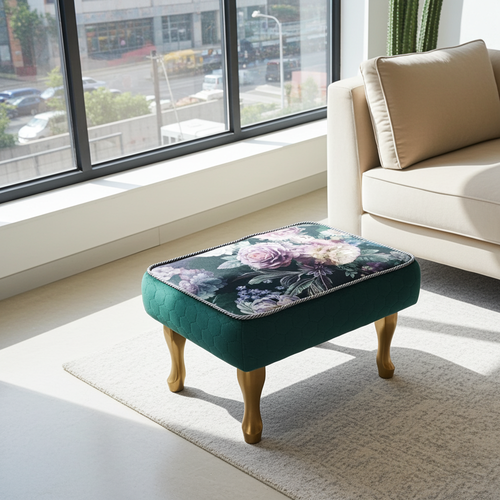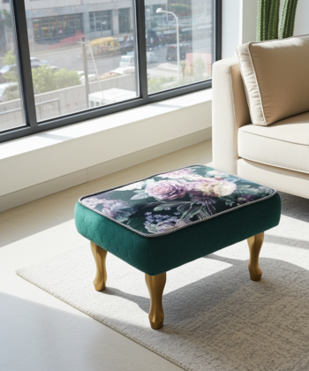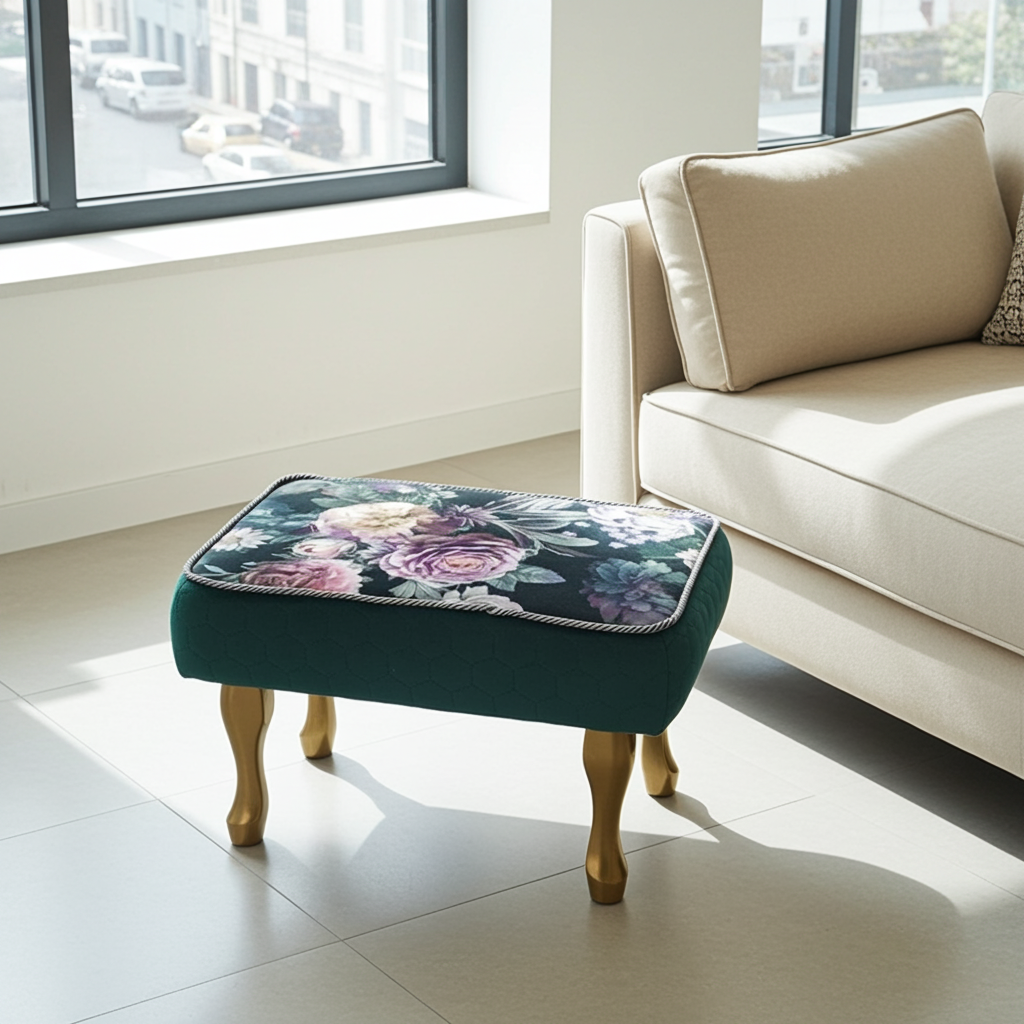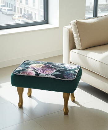 The elegant golden metal legs deliver outstanding stability and contemporary luxury aesthetics with premium finish coating. Meanwhile, the premium dark floral velvet introduces sophisticated comfort and romantic visual appeal. Additionally, the handcrafted construction ensures superior quality and attention to detail. Therefore, this footstool represents an outstanding investment for stylish Irish homes and refined living standards.