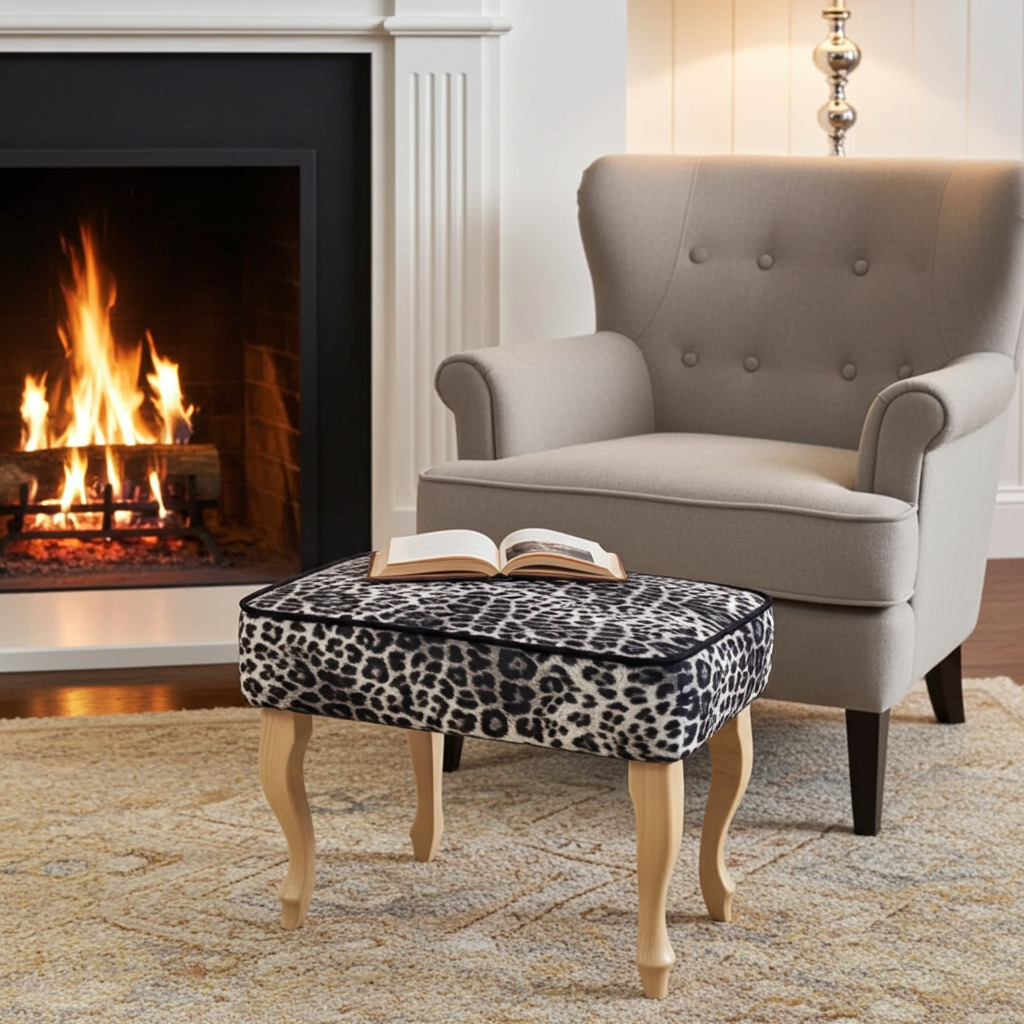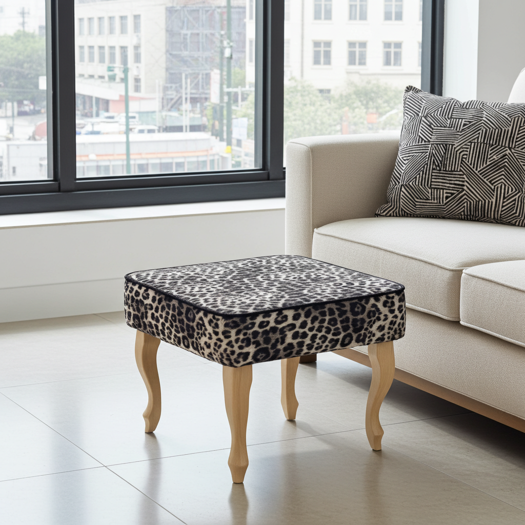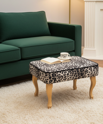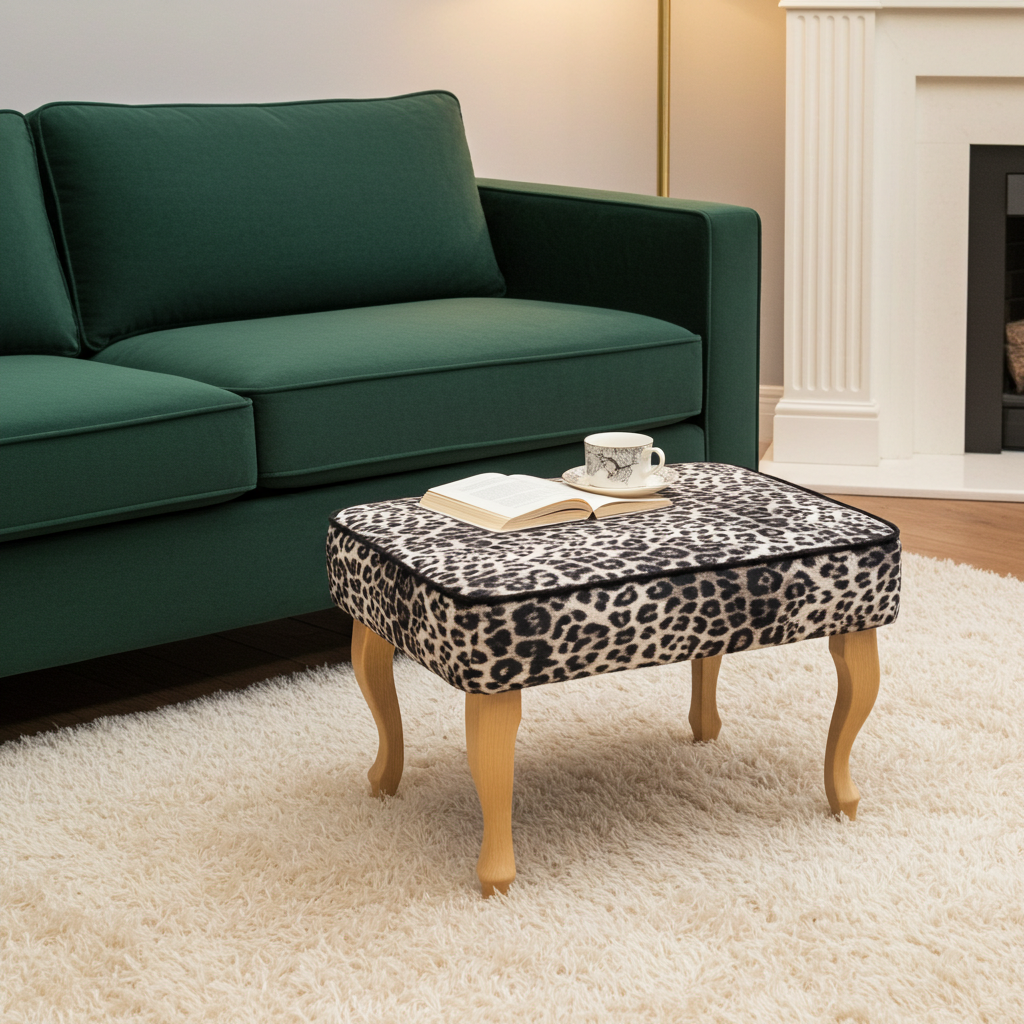 The natural beech wood legs provide excellent stability and organic aesthetics with protective oil coating. Meanwhile, the premium snake print velvet introduces sophisticated luxury and bold visual appeal. Additionally, leg height adjustments are available depending on selected customisation options. Therefore, this footstool represents an outstanding investment for stylish Irish homes and contemporary living standards.