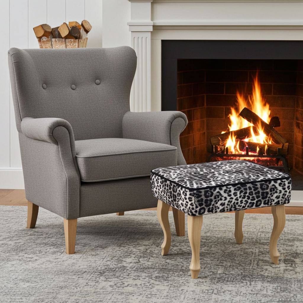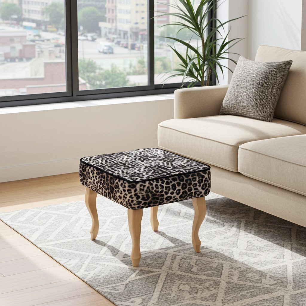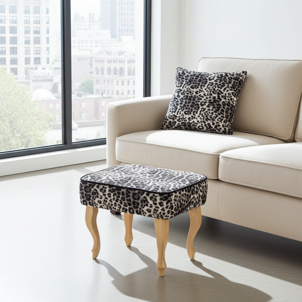 The natural beech wood legs provide excellent stability and organic aesthetics with protective oil coating. Meanwhile, the premium snake print velvet introduces sophisticated luxury and bold visual appeal. Additionally, leg height adjustments are available depending on selected customisation options. Therefore, this footstool represents an outstanding investment for stylish Irish homes and contemporary living standards.