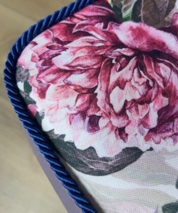 Brighten your living room, bedroom, or reading nook with the Lavender Peony Velvet Footstool from PouffeLove. This pouffe features a pastel floral velvet top with peony and wildflower prints that instantly lift the mood of any space. Soft lavender velvet sides and a blue trim add a gentle, sophisticated touch. The curved beech wood legs provide both stability and vintage-inspired charm, so you can easily blend this piece with modern or classic Irish interiors.