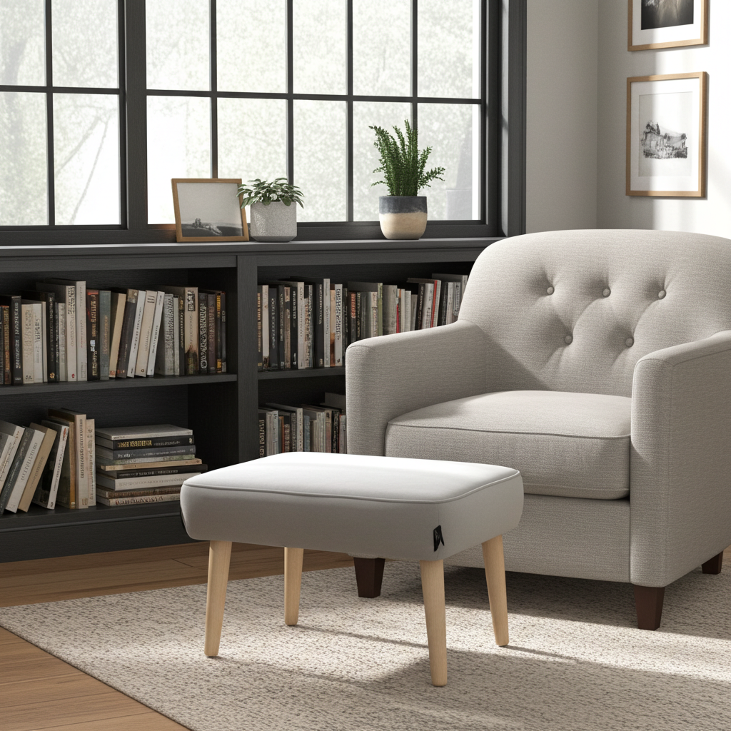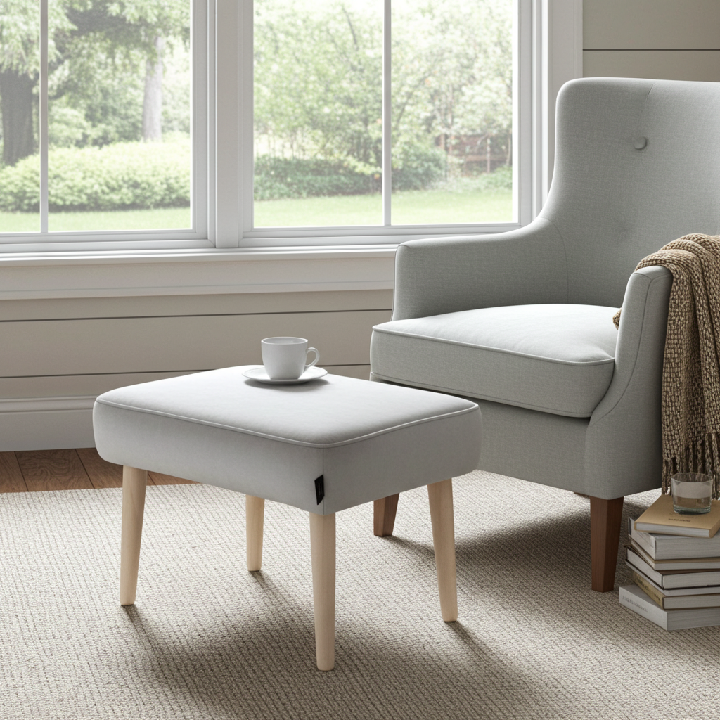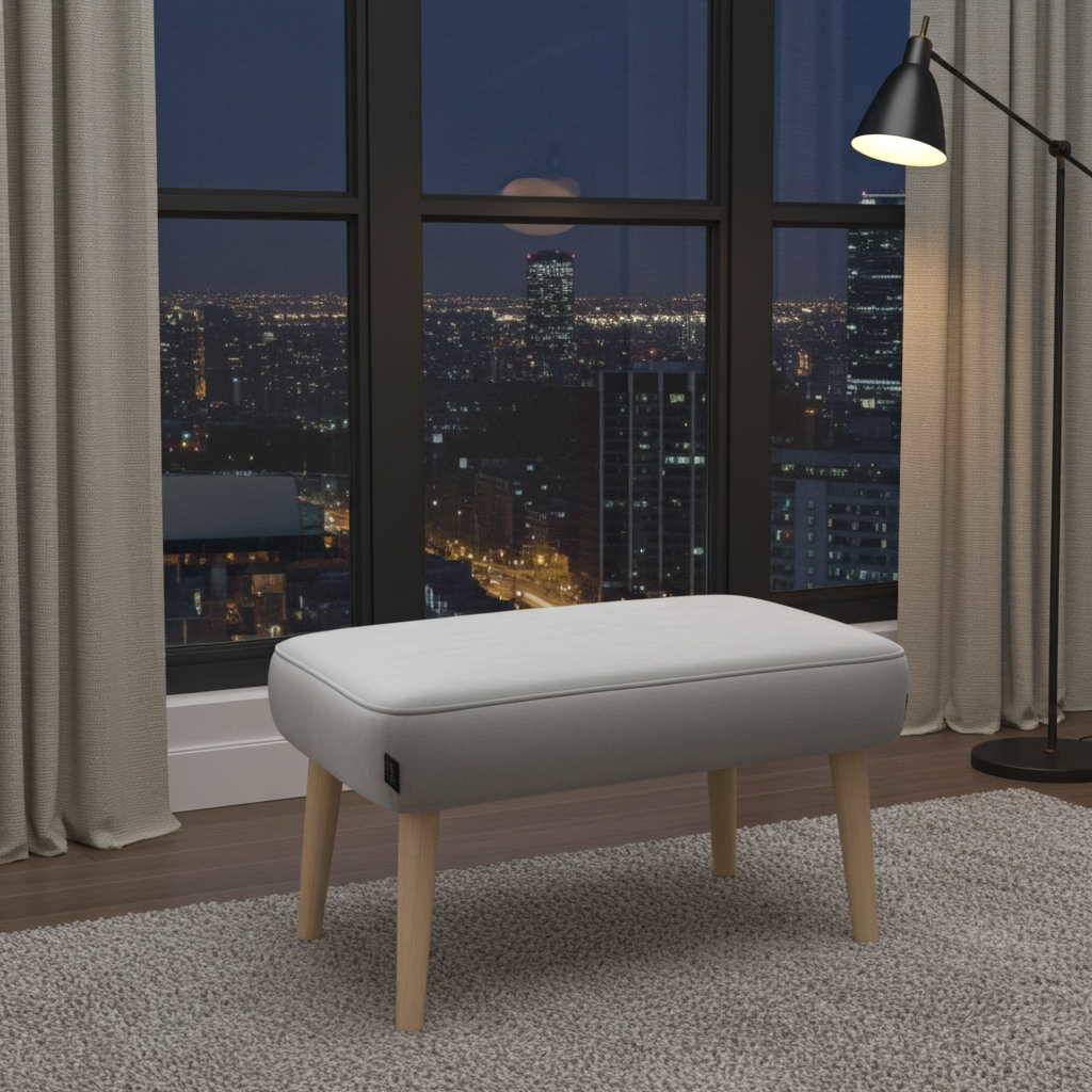 This footstool sits on a strong wooden frame with beech wood legs finished in natural oil. You choose the leg shape, colour and height, which makes matching it to your sofa or armchair easy. If you want a more glamorous look, select metal legs in gold, black gloss or rose gold for a small extra charge. After you place your order, the team confirms if your chosen version is in stock. In‑stock pouffes ship in about 2–5 working days, while made‑to‑order pieces usually need around 20 working days.