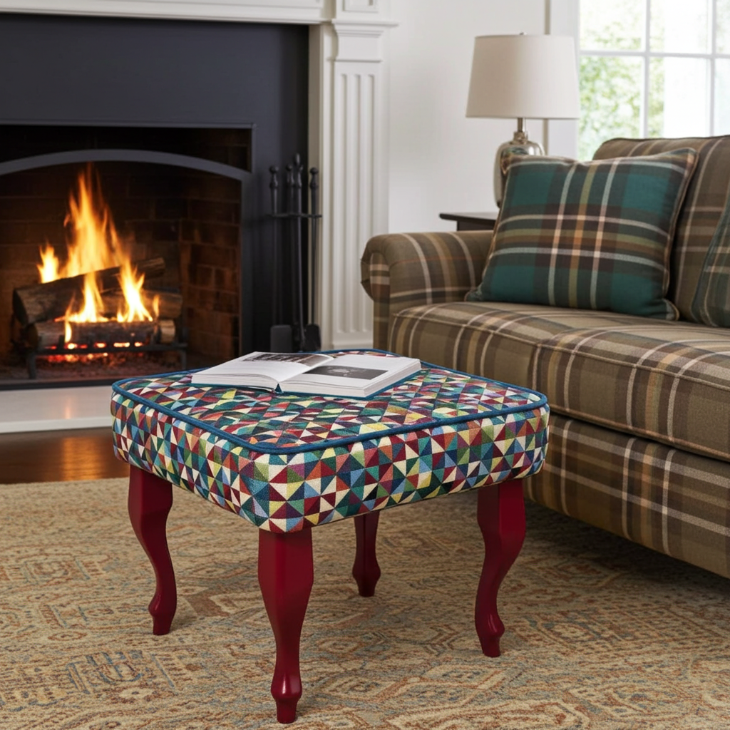 Transform your interior with the Geo Carnival Velvet Footstool, designed for those who love bold patterns and vibrant colours. The seat and matching cushions showcase a dynamic geometric print, while your choice of classic carved or modern straight beech legs ensures the perfect fit for your style. The foam-filled cushion offers comfort for everyday use, whether as a footrest, extra seat, or decorative highlight in your living room, bedroom, or hallway.