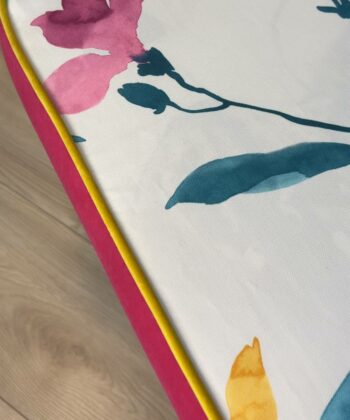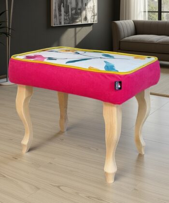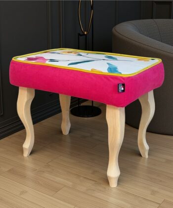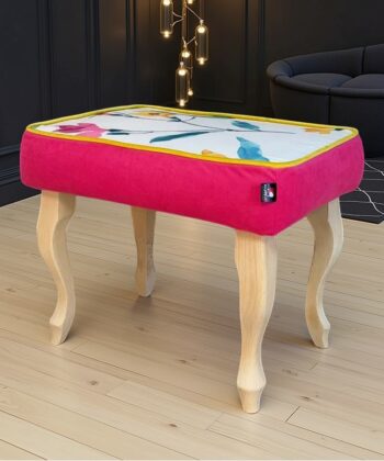 Add a burst of colour and creativity to your space with the Fuchsia Bloom Velvet Footstool. The artistic floral velvet top, surrounded by vibrant pink velvet and finished with a sunny yellow trim, brings a fresh, uplifting feel to any room. The natural curved beech wood legs provide stability and timeless elegance, while the foam-filled cushion ensures everyday comfort.
