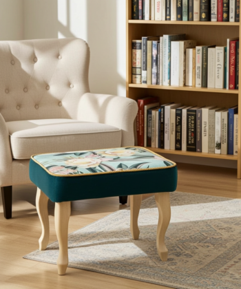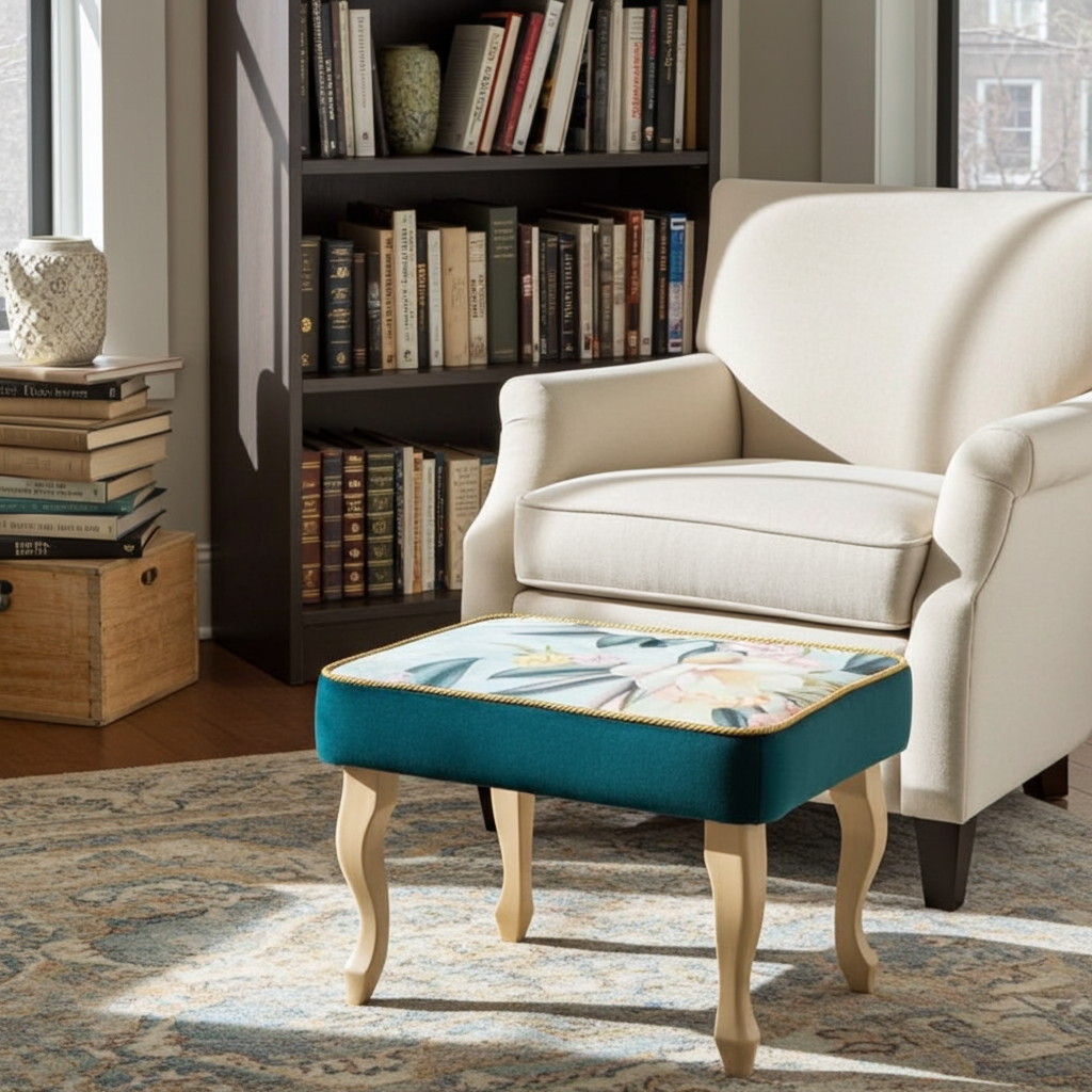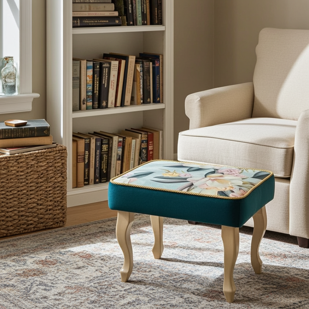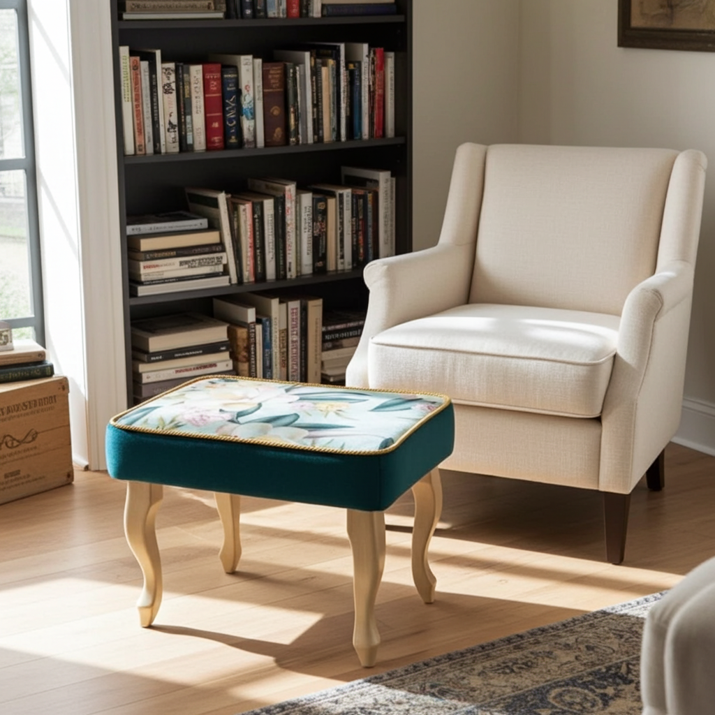 Velvet Footstool 60x40cm with Floral Top – Unique Handmade Elegance