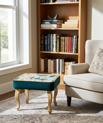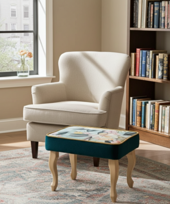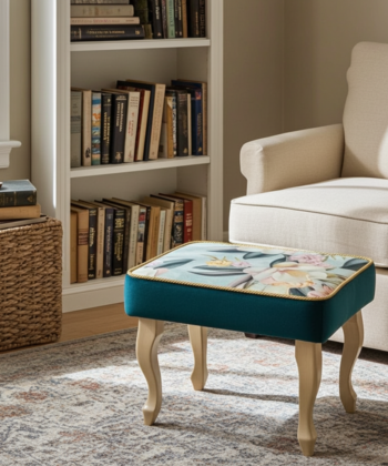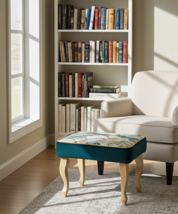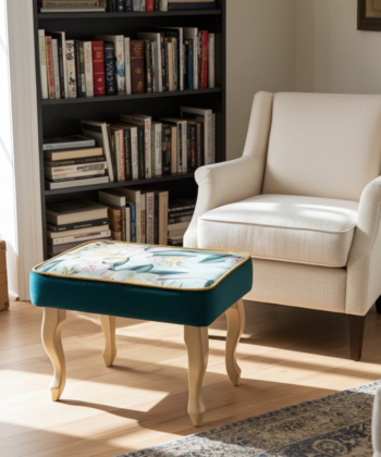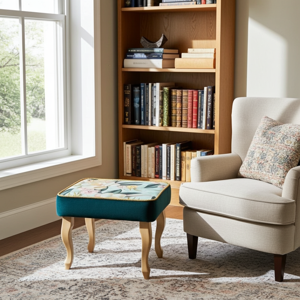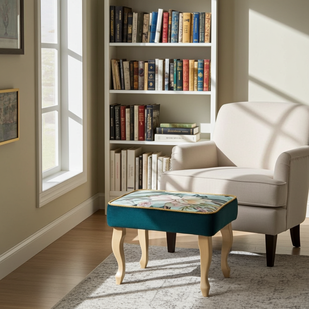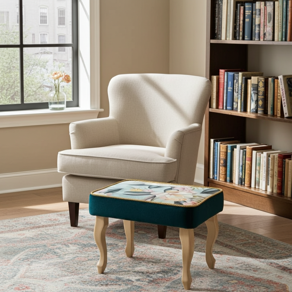 Velvet Footstool 60x40cm with Floral Top – Unique Handmade Elegance