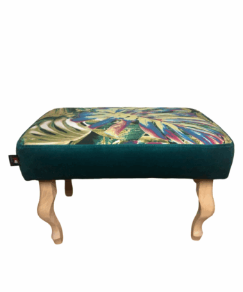 The described product is an upholstered pouf with dimensions of 60 x 40 cm and a height of 40 cm. The seat is covered with high-quality velvet fabric.