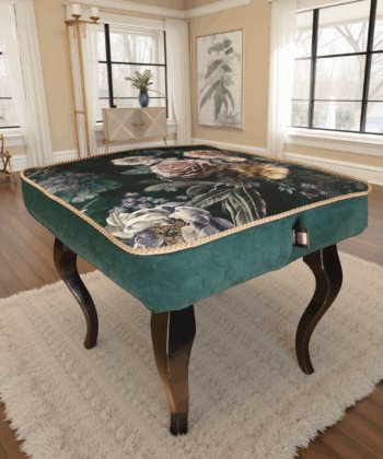 With this footstool, you can easily add a touch of botanical elegance and comfort to your space. Thanks to custom options, you create a piece that truly matches your style and needs.