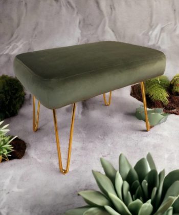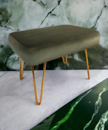 The described product is an upholstered pouf with dimensions of 60 x 40 cm and a height of 40 cm. The seat is covered with high-quality velvet fabric.